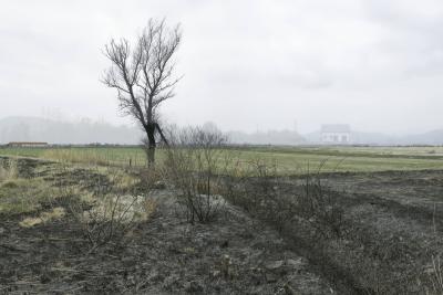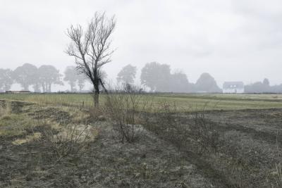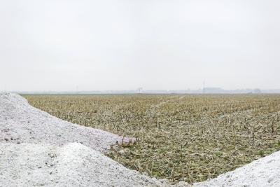 Il y a beaucoup de post production dans ces images, j’ai choisi pour cette série d’annihiler beaucoup des différences météorologiques en choisissant globalement des ciels plats gris, blanc. D’autre part, je ne voulais pas montrer la récolte, qui aurait donné un sentiment peut être d’opulence mais bien au contraire les sols plus ou moins mis à nu par les labours ou ras.