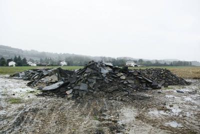 Le projet a d’abord existé sous forme de tirages photographiques grands formats, mais il manquait une durée : c’est en manipulant les images sur Photoshop que j’ai finalement trouvé la forme du diaporama, du montage. À travers de long fondu enchainé, je traduis un mouvement, celui de la transformation des sols, celui de la ligne d’horizon qui file à travers la fenêtre d’un train ou d’une voiture mais plus lent, et la monotonie de ces paysages.