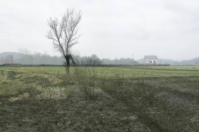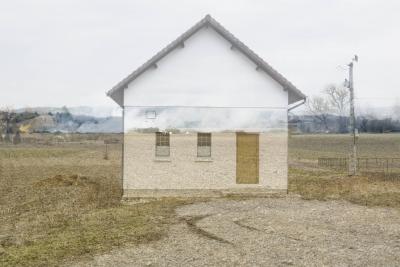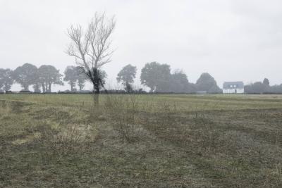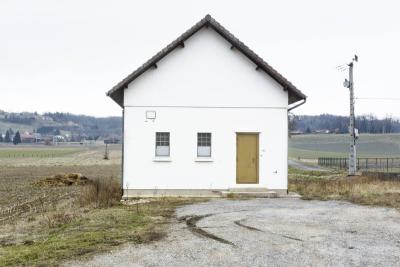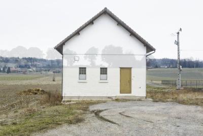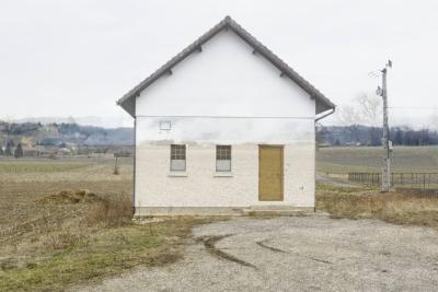 J’étais alors encore étudiante à l’ENSP Arles, en stage au Domaine de Kerguehennec. Chaque matin avant de rejoindre le centre d’art, je partais marcher dans la campagne tout autour. Il y a quelque chose dans ce paysage, avec cette petite maison posée sur la ligne d’horizon, quelque chose dans sa construction même, qui m’a semblé extrêmement commun. J’ai pris l’image sans vraiment comprendre ce qui était en jeu, j’ai pris l’image pour comprendre, plus tard.