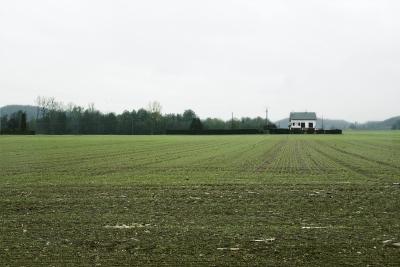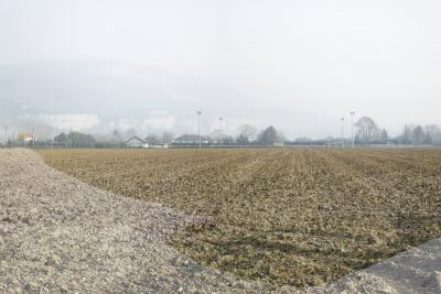 De là est parti ce projet. J’ai sillonné la France, pour en photographier un peu partout les surfaces agricoles, les champs, et au loin les lotissements. Et j’ai placé la ligne d’horizon au milieu de mes images :je souhaitais dans la construction même de l’image traduire quelque chose de l’ordre, de la géométrie, du rationnel, des surfaces de rendement.