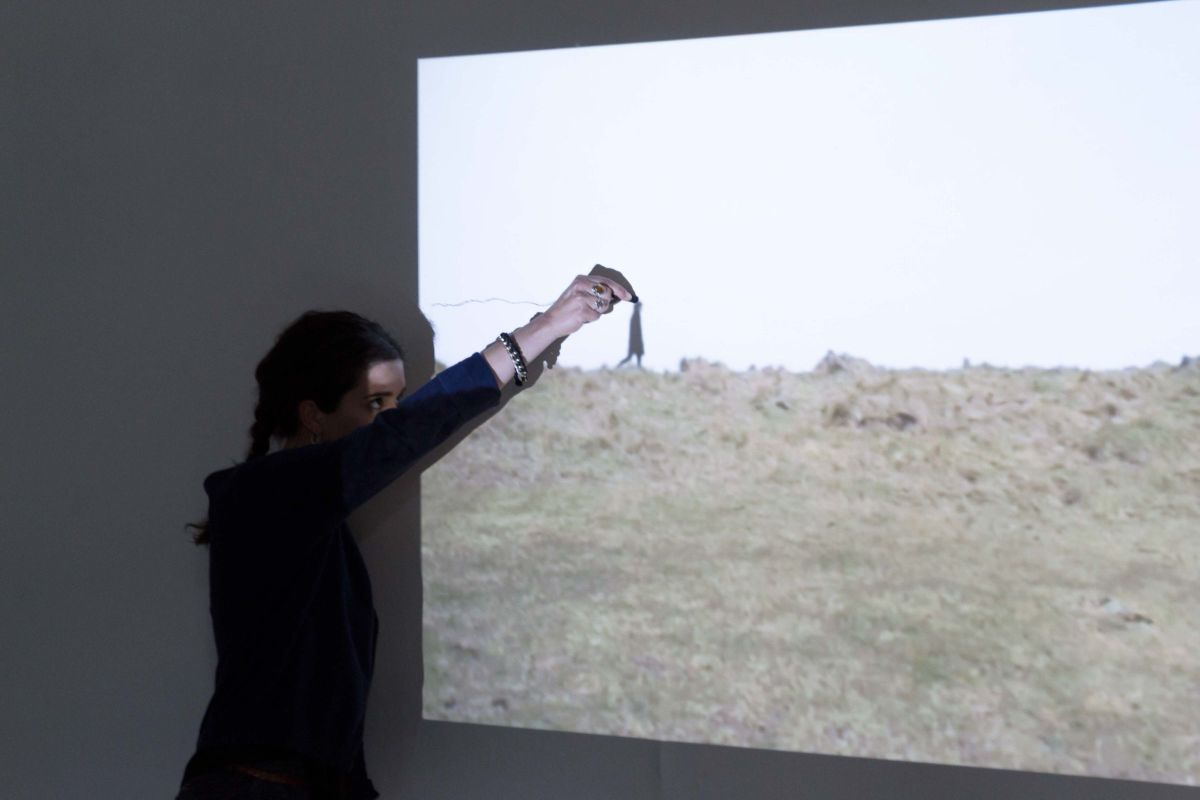 Juliette Davis, Armelle Rabaté, Horizon mobile, vidéoprojection, performance, dessin, 2016.