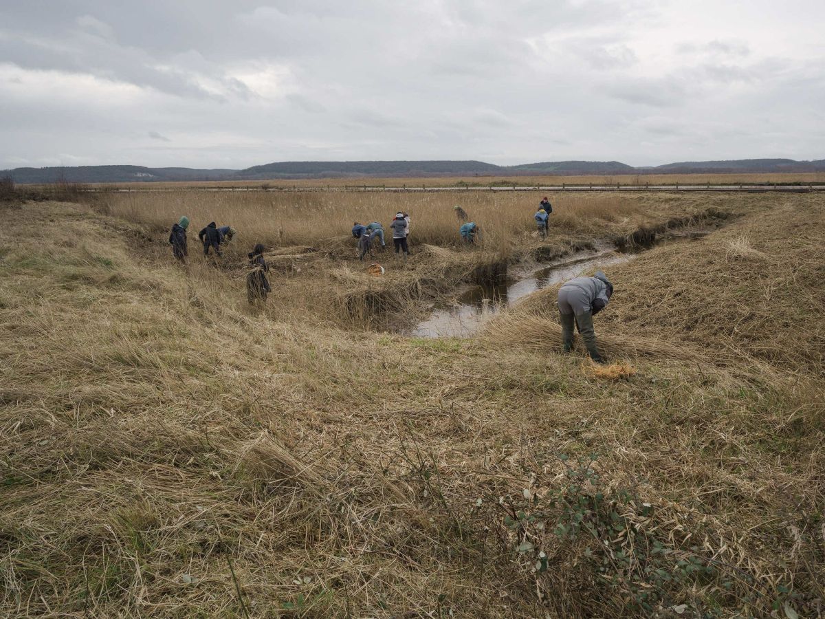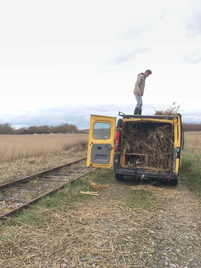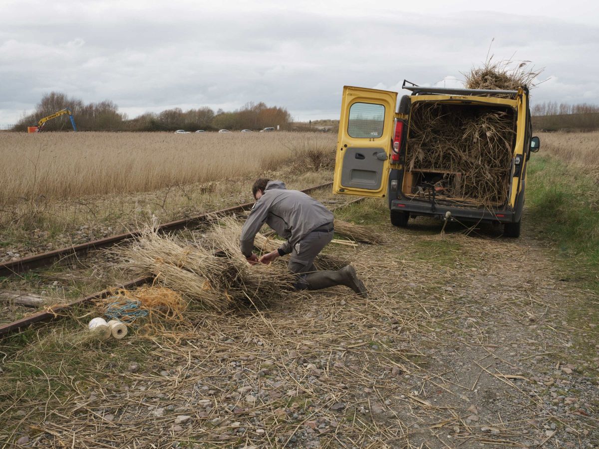 Dans le cadre d’un partenariat avec la réserve de l’estuaire de la Seine, nous avons organisé une journée de chantier collectif. L’enjeu était de rouvrir une parcelle pour favoriser la nidification d’un oiseau, le Butor Etoilé tout en prélevant un matériau constructif.