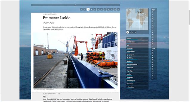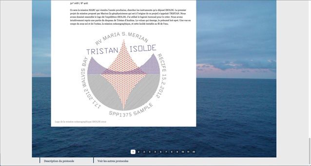 L’oeuvre en ligne est produite par Geomar dans le cadre de la mission Isolde et a été présentée au Colloque International de géophysique: SAMPLE Kolloquium Tutzing Allemagne 2012.