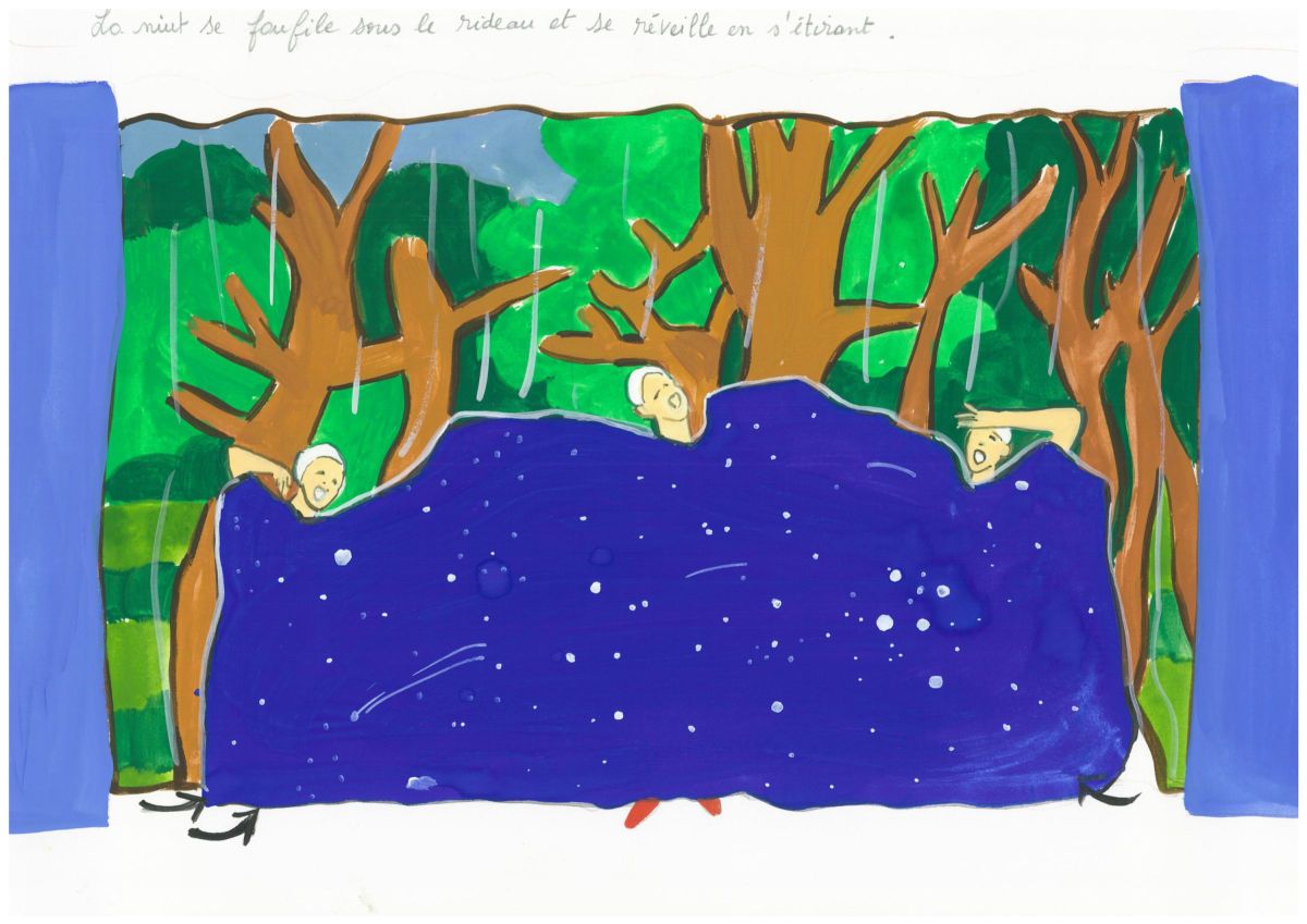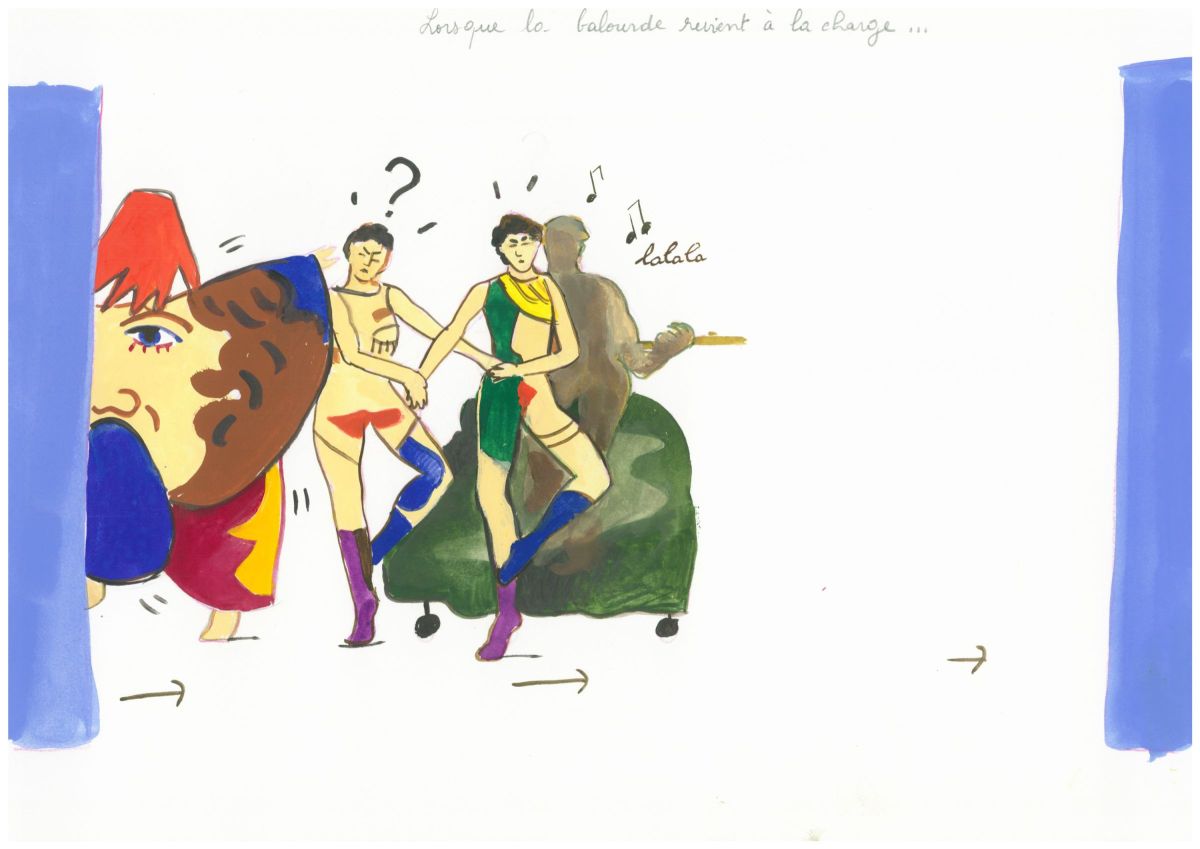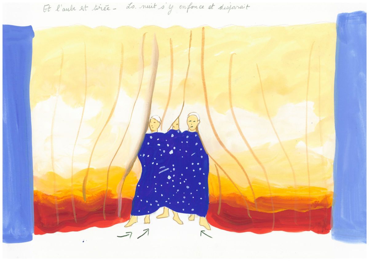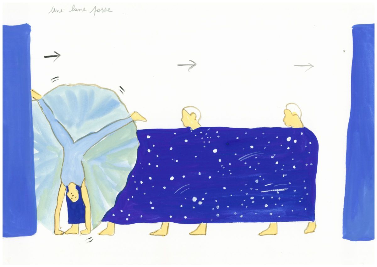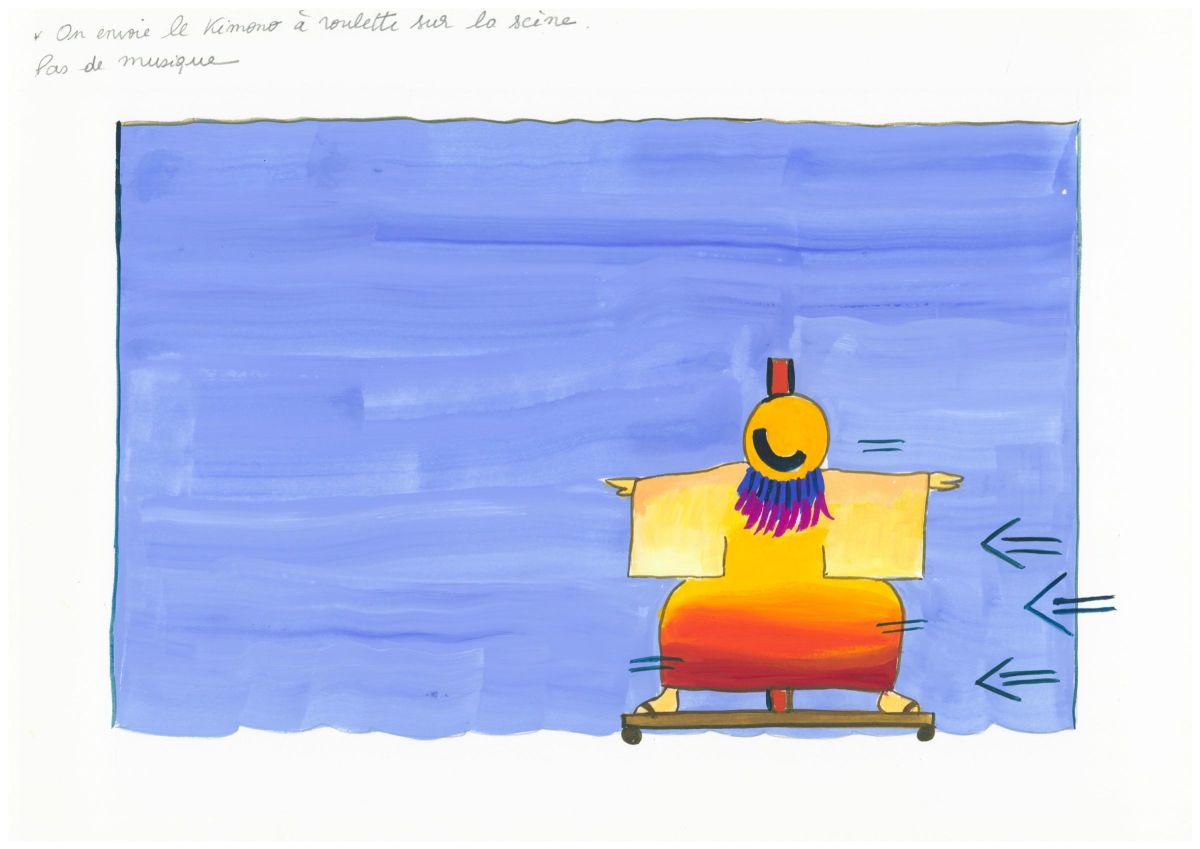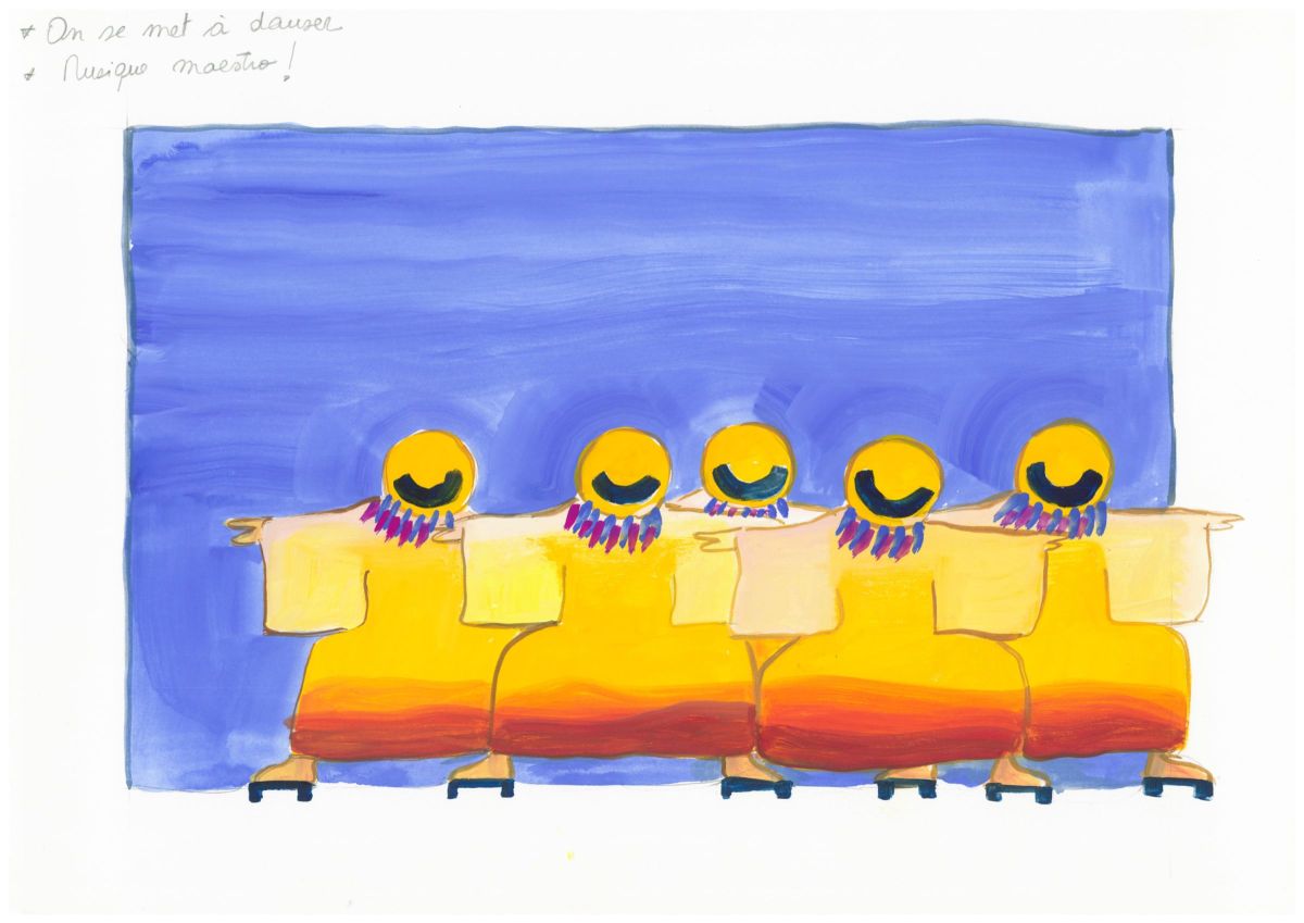 J’ai conçu les éléments de ce ballet en m’appuyant sur des gestes de danse comme support pour mes peintures. Pour les peuples premiers d’Australie, la peinture et la danse sont des médiums de transmission pour le rêve afin que l’on s’en souvienne aujourd’hui et pour toujours ; « À la recherche d’un état de joie » pour le dire avec les mots de Rudolph Von Laban.