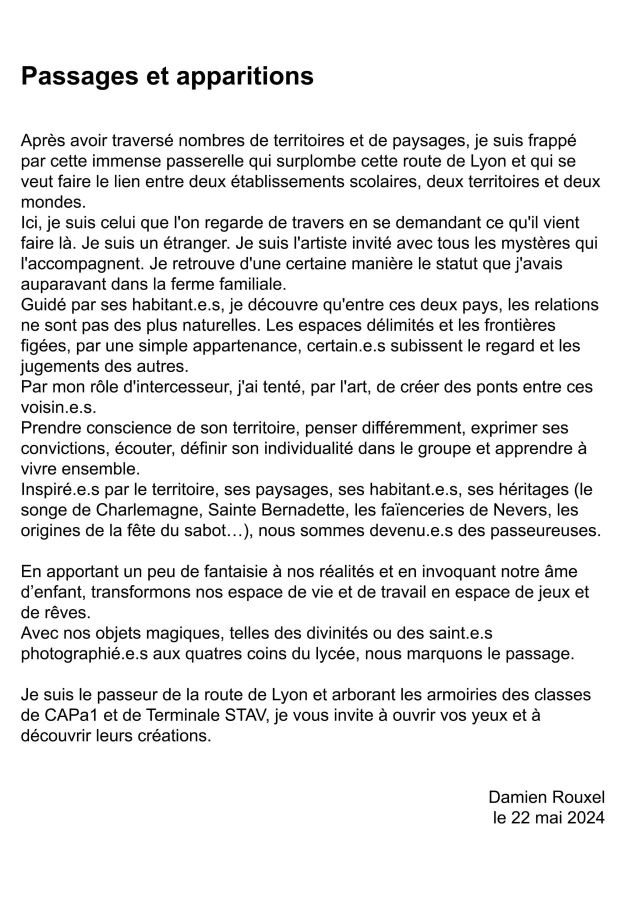 Vues d'exposition au sein des lycées professionnels et technologiques de Plagny et Challuy, Nevers.
