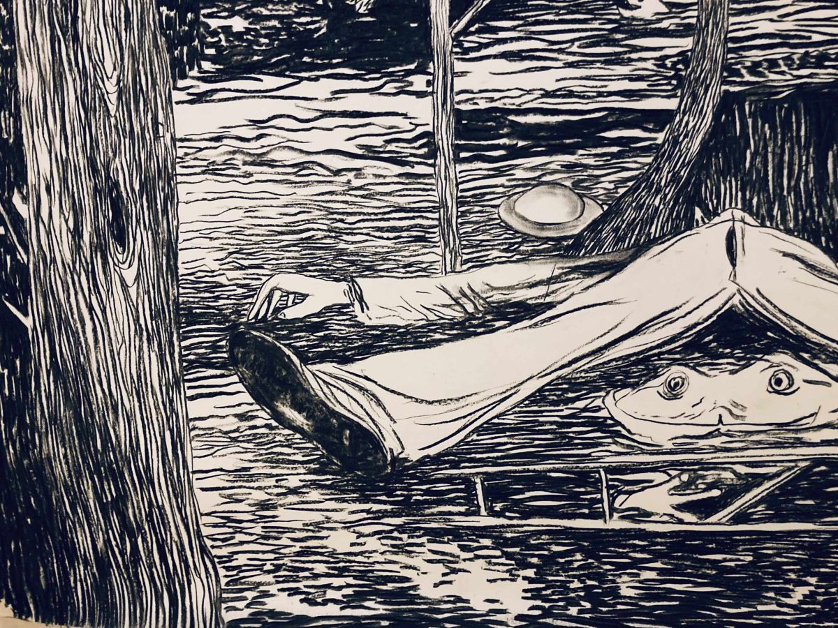 “…La première histoire d’amour dont j’ai connu l’existence est celle de ma mère. Elle devait faire face à un fakir, contorsionniste à ses heures pleines. En fait, ce n’était devenu qu’un bibelot dont on ne se souciait guère de comprendre les motivations réelles, l’origine. L’absurdité de ses mutilations semblait un non sens. Ma mère avait réussi à poser son fakir, sur le manteau de la cheminée où l’âtre battait son plein. Il semblait résigné, je redoutais un sale coup… C’était à croire qu’une malédiction oubliée le tenait par les parties basses…
