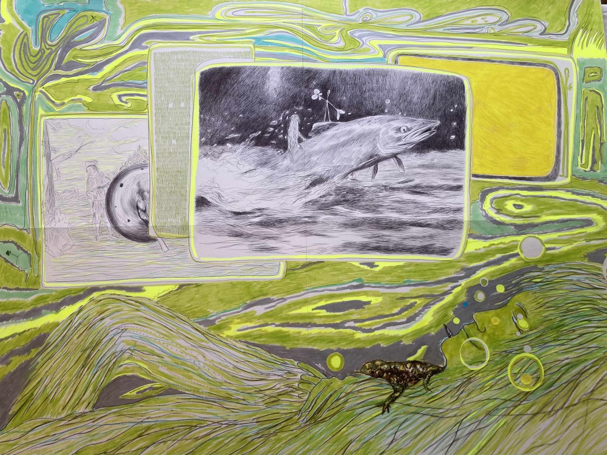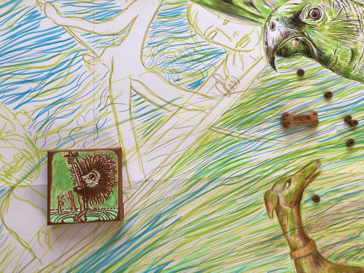 Aquarelle, huile sur toile, croquettes pour chien sur papier 200g