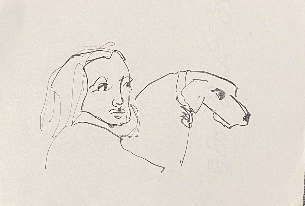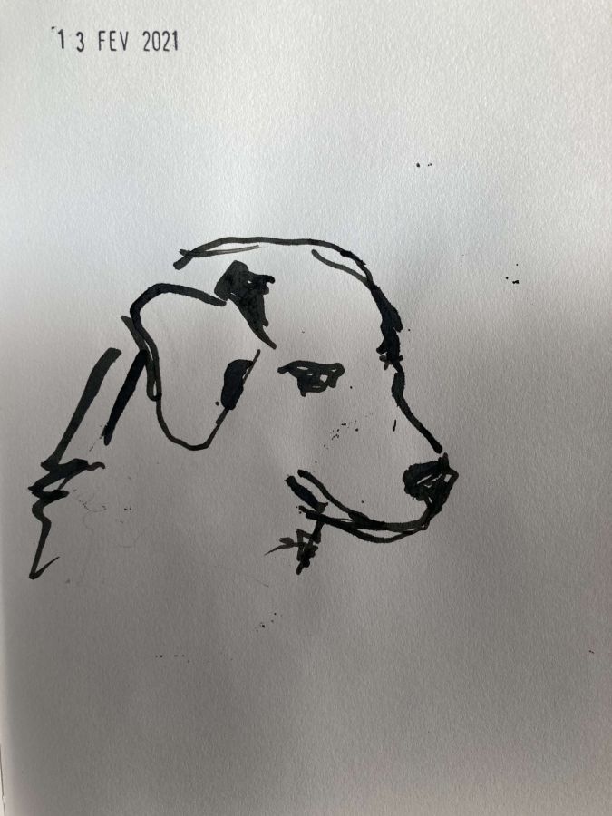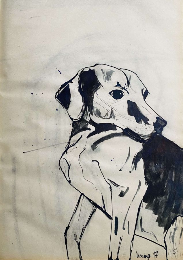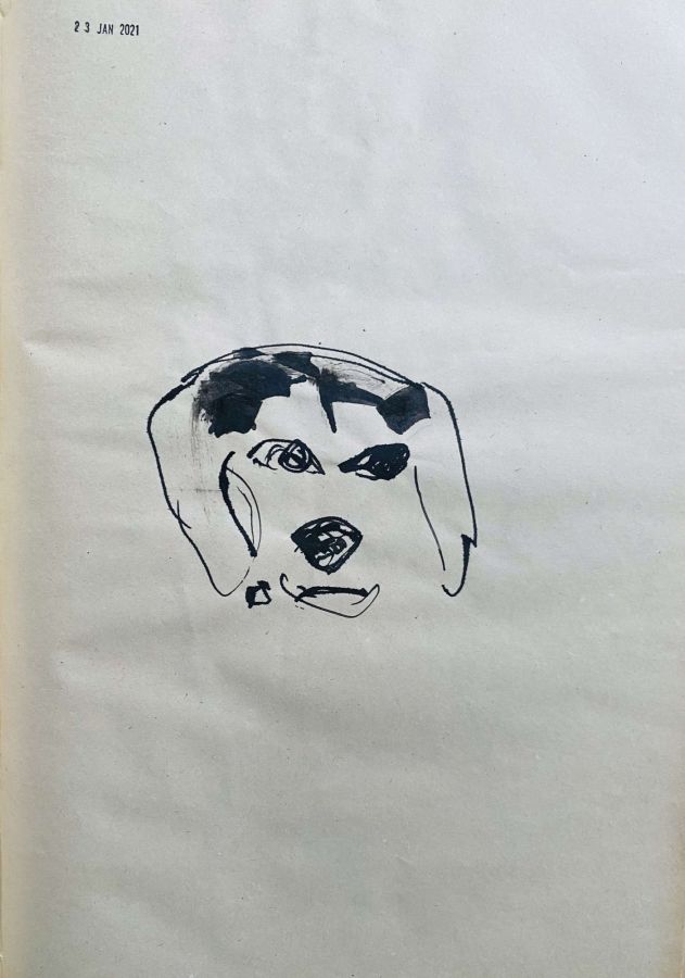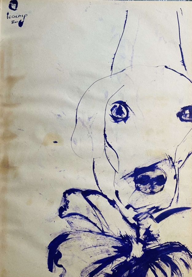 Papier bristol bleu, encre violette