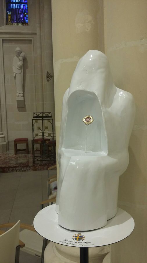 Ce pleurant s’inscrit dans une tradition sculpturale classique sur les sépultures des gisants. Il a été réalisé dans le cadre d’une commande de de la communauté des Soeurs Augustines souhaitant offrir un reliquaire à la mémoire de Saint Jean Paul II, et est visible à la chapelle Saint Yves, au sein de la clinique Saint Yves à Rennes.