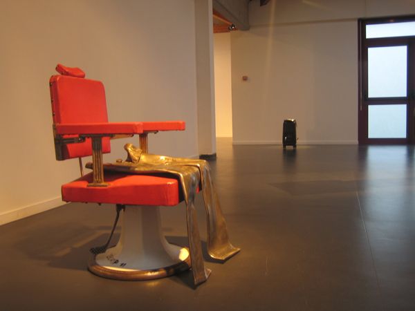 Acier doux, vernis, fauteuil de coiffeur, 110 x 60 x 50 cm