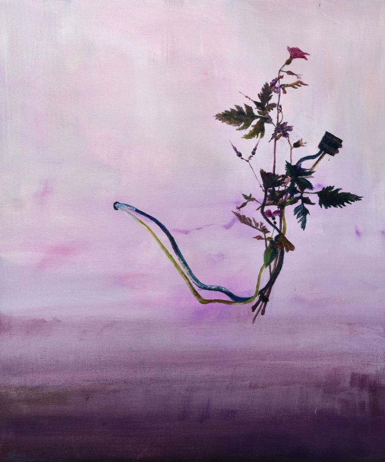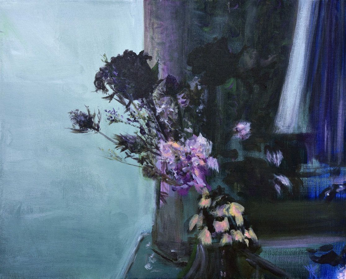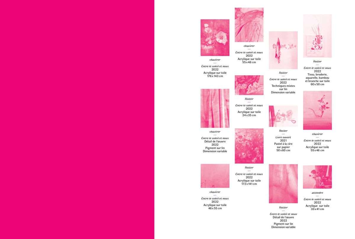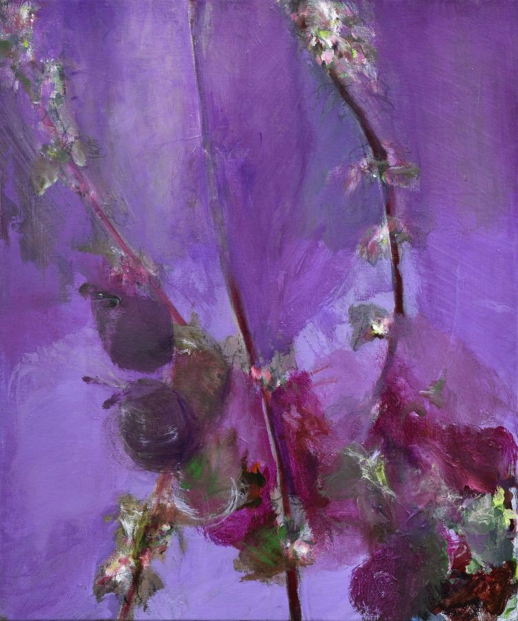 Pour préparer cette exposition, la MAC de Pérouges lui a fait bénéficier d’une résidence de deux mois à Molly Sabata, dans la magnifique demeure/atelier de Albert Gleize, cet artiste et théoricien de l’art, co-fondateur du cubisme. Là, devant un Rhône majestueux, elle a peint l’essentiel des œuvres exposées ici, réorientant son travail qui la cantonnait dans une abstraction colorée, vers le végétal magnifié par la fleur, vers le motif floral et ses exubérances colorées.