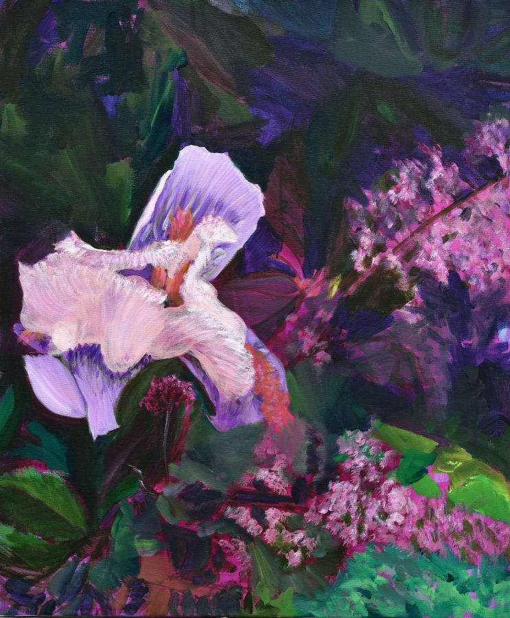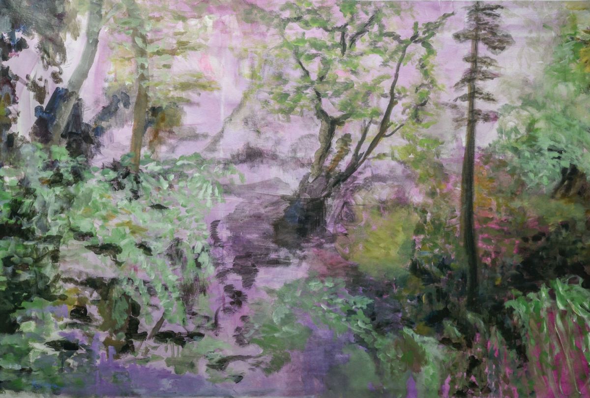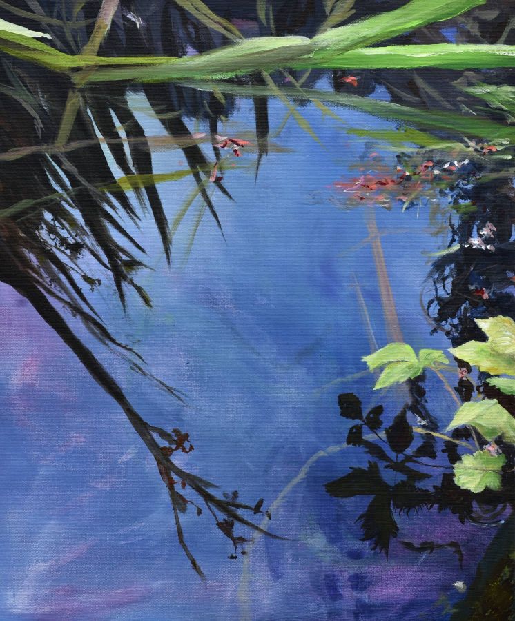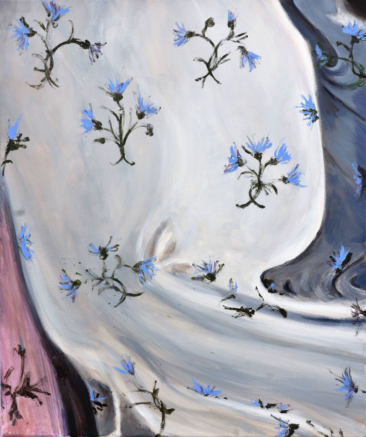 Pour préparer cette exposition, la MAC de Pérouges lui a fait bénéficier d’une résidence de deux mois à Molly Sabata, dans la magnifique demeure/atelier de Albert Gleize, cet artiste et théoricien de l’art, co-fondateur du cubisme. Là, devant un Rhône majestueux, elle a peint l’essentiel des œuvres exposées ici, réorientant son travail qui la cantonnait dans une abstraction colorée, vers le végétal magnifié par la fleur, vers le motif floral et ses exubérances colorées.