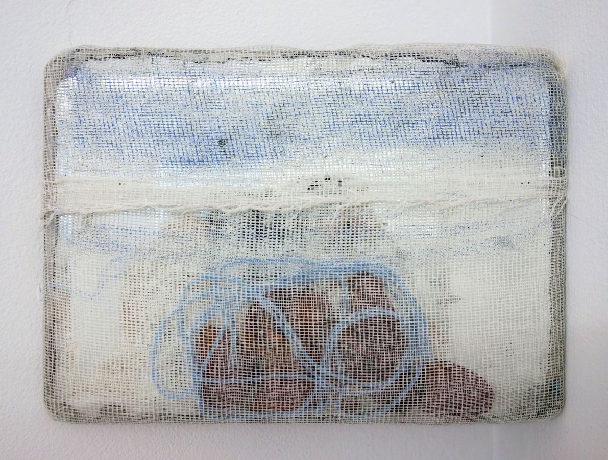 Dans la grande salle d’exposition, elle présente également de grandes étoffes qu’elle a coloré et qui pendent du plafond comme des épouvantails fatigués, mais néanmoins joyeux. Ces draps peints sont créés en collaboration, peut-on dire, avec l’océan, qui par les sels minéraux qu’il contient en fixe les pigments de la couleur dont l’artiste les a imbibé…