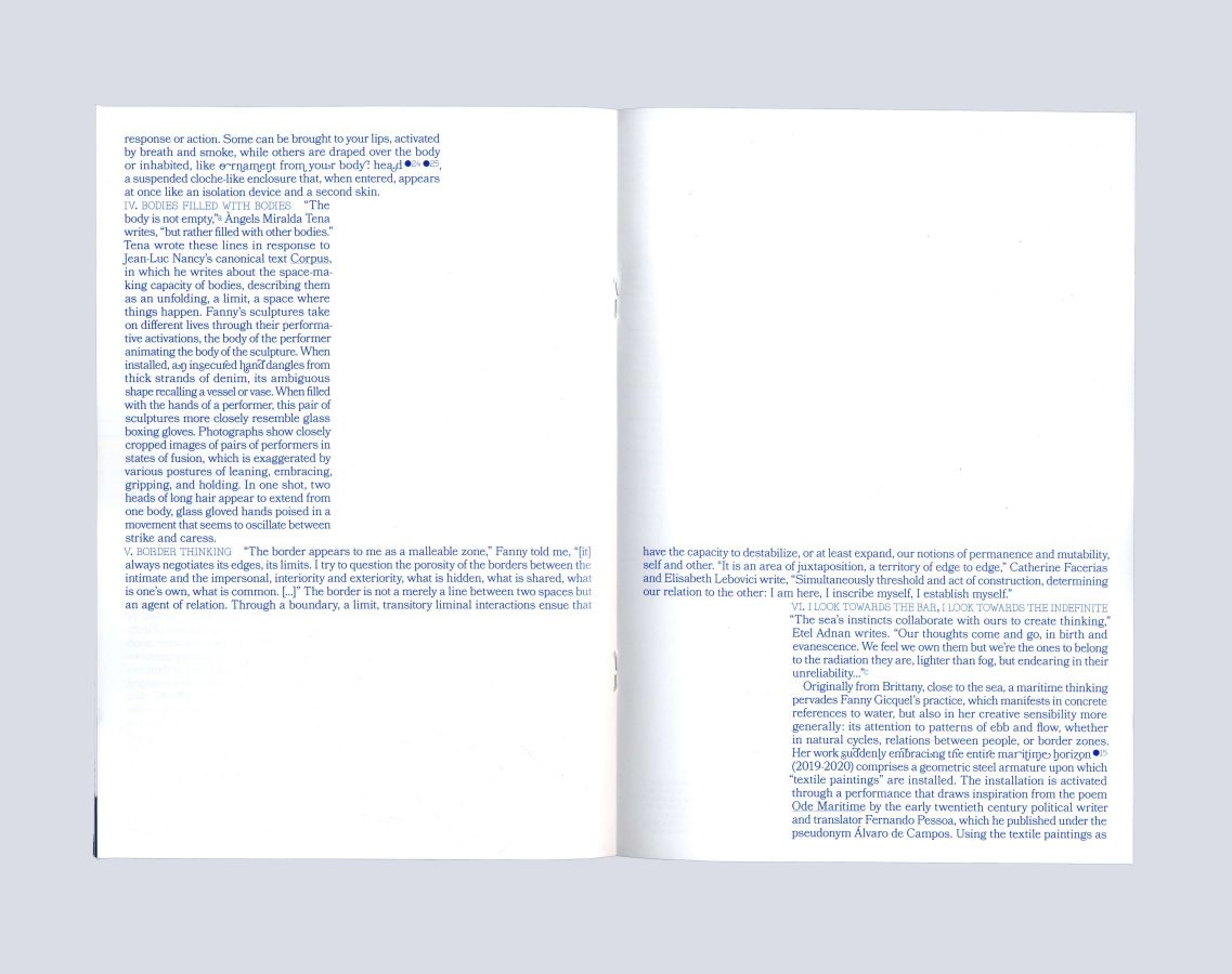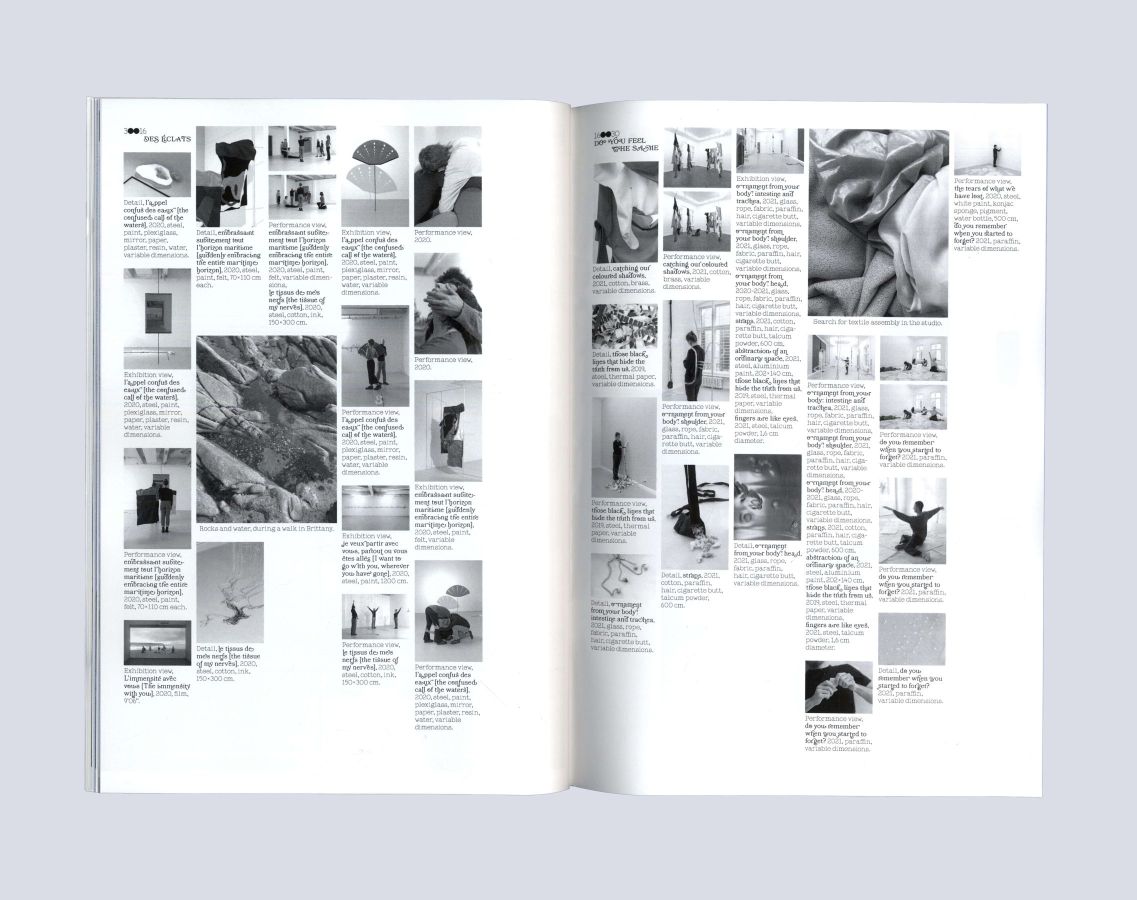 Au cours des dernières années, elle a exploré la perméabilité entre le soi et l’autre, l’intérieur et l’extérieur, le vivant et le non-vivant, cherchant à créer une nouvelle syntaxe qui questionne nos modes de relation. Ses œuvres sculpturales, souvent mises en dialogue avec des performances mêlant chorégraphie et improvisation, ont pris la forme d’installations performatives où les interactions entre les corps, l’espace et les matériaux étaient au cœur de l’expérience.