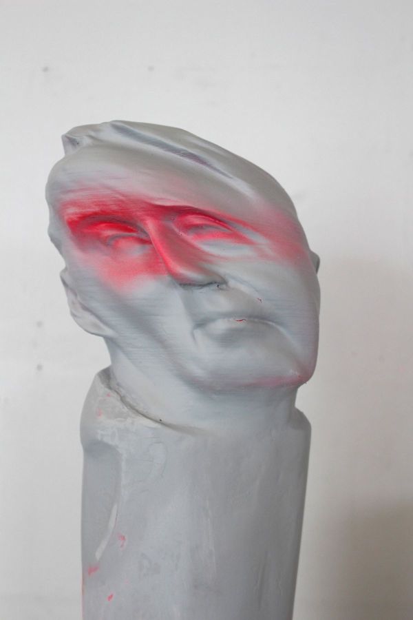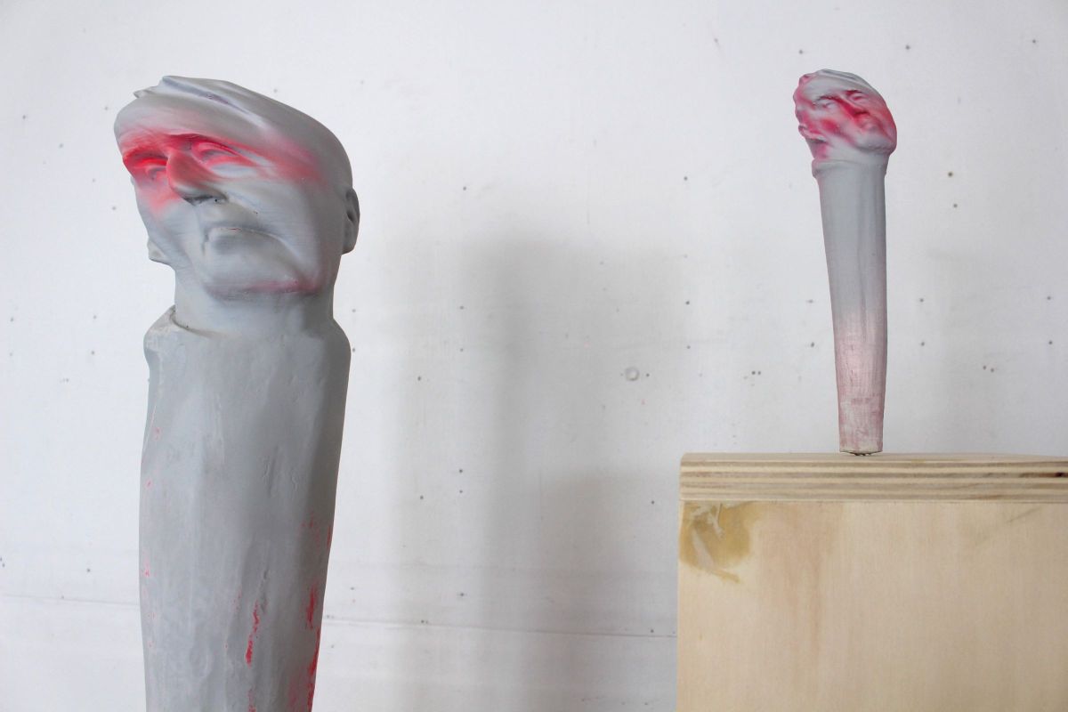 Têtes moisies, plâtre et moisissure sur table de camping, 2018-2019
