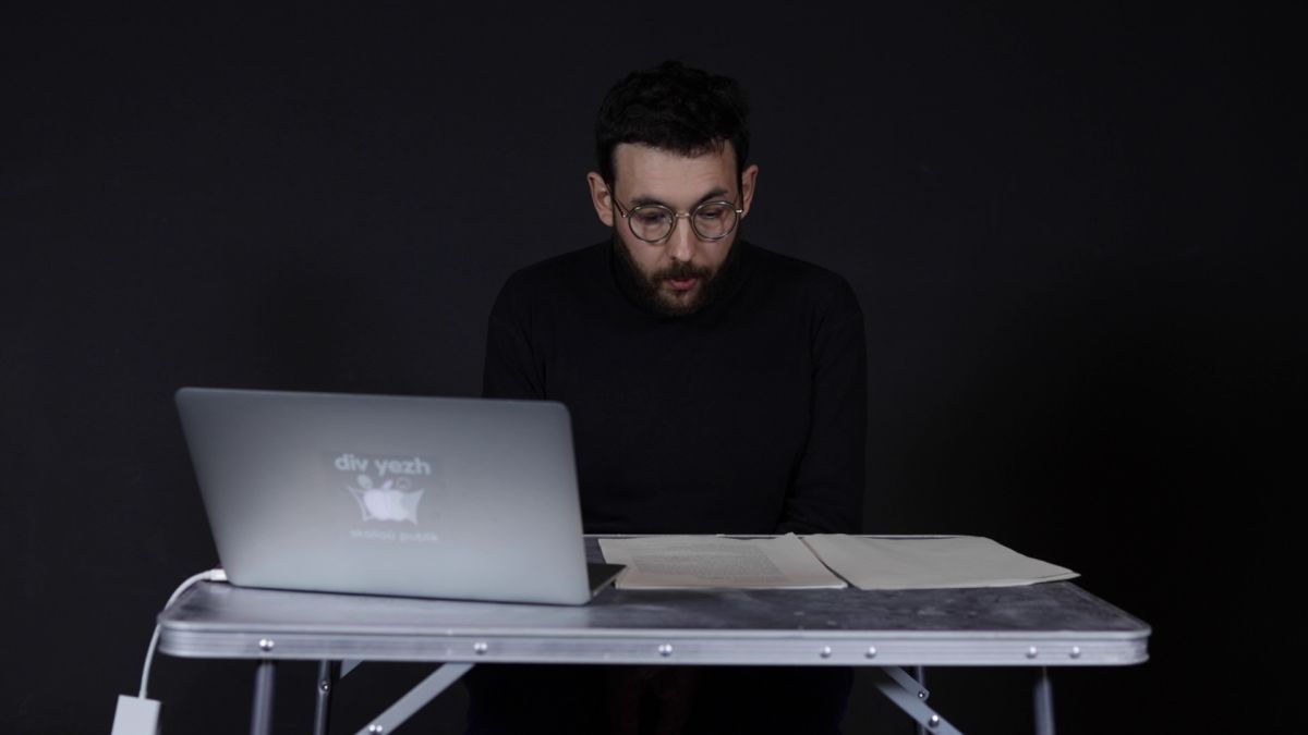 La conférence est un projet vidéo. Il s’agit d’une conférence prenant quelques fois des airs de performance. Les trois protagonistes sont un artiste plasticien en conférence, une actrice et un chanteur (avec une guitare). L’artiste fait une intervention à partir de ses notes de lecture. Il liste les livres qu’il a lus et les quelques idées que lui ont donné ses lectures. Les autres acteurs interviennent de façon lunaire, ironiquement, voir de façon absurde. Les images présentées sur l’écran de projection sont des œuvres fictives, des mises en forme, des listes thymiques des lectures de l’artiste.