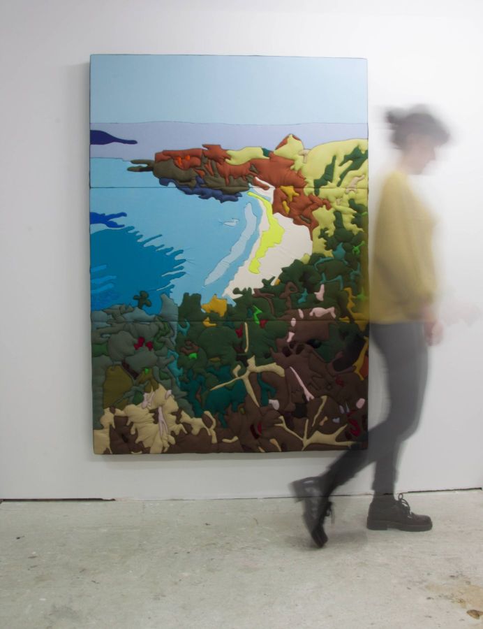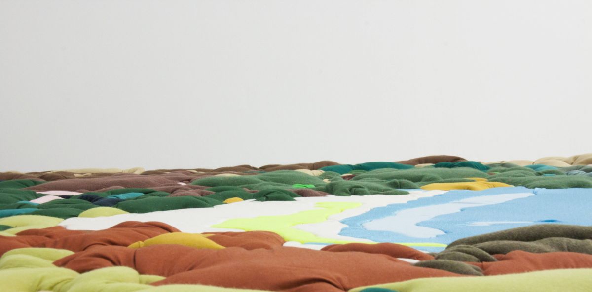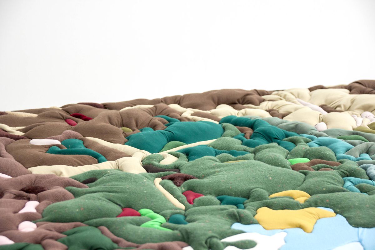 polystyrène extrudé, molleton de polyester, tissus divers, 126 x 180 x 10 cm,