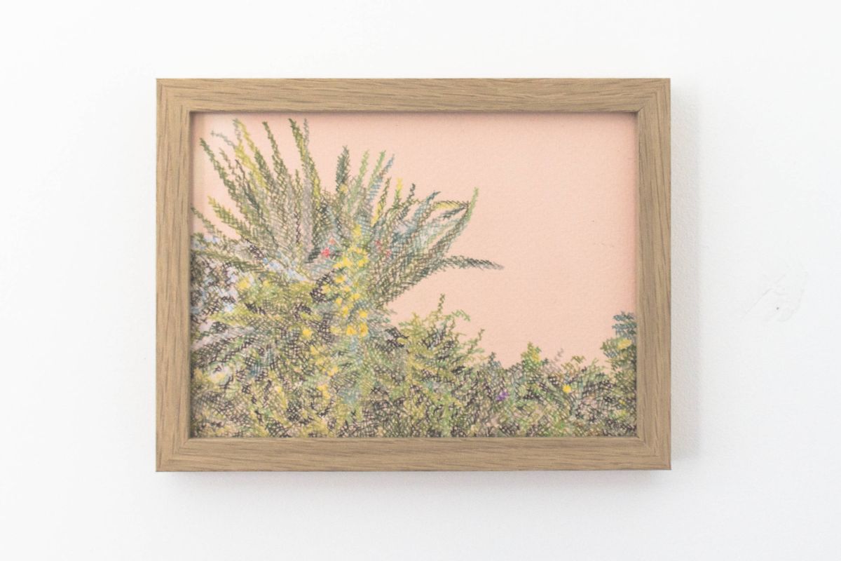 Crayon de couleur sur papier rose, 14,8 x 21 cm
