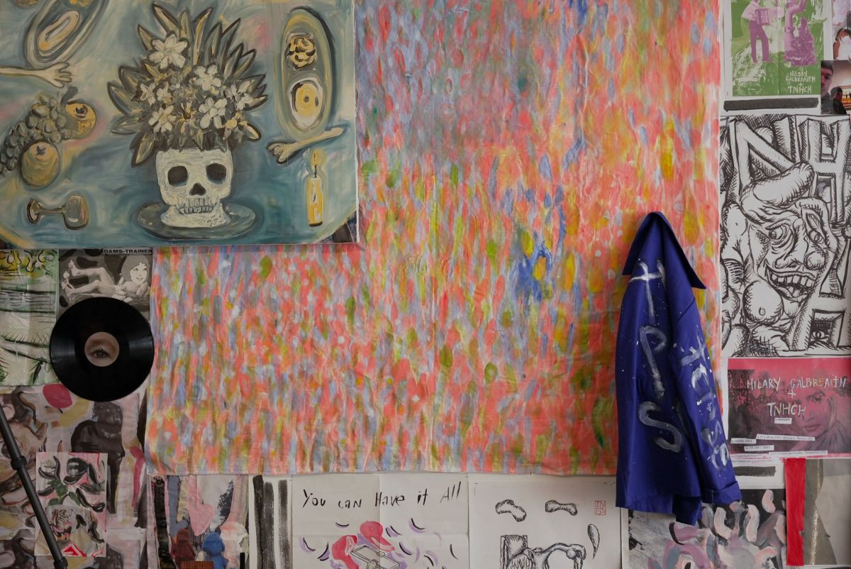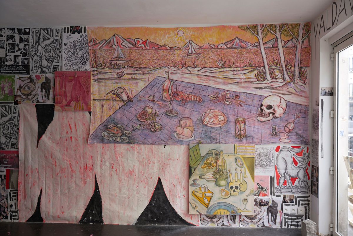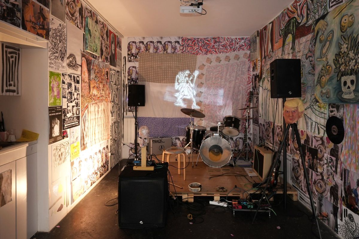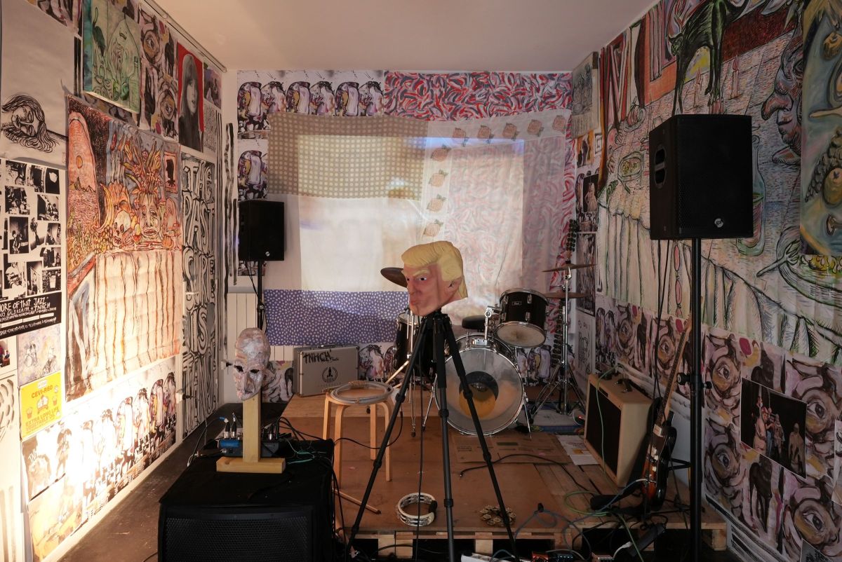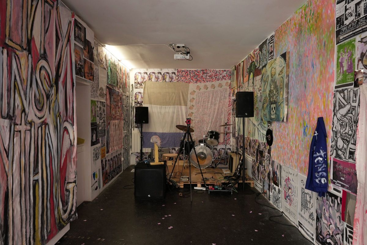 TNHCH et Hilary Galbreaith investissent Glassbox comme on occupe un garage, ou bien un disquaire, ou bien encore une salle de répétition, un atelier de peinture, un musée, sans vraiment se mettre d’accord sur ce que devient l’espace de la rue Moret, sans non plus choisir entre arts visuels et arts vivants. Fruit d’un travail qu’iels mènent depuis trois ans, l’album Valda a été enregistré à CAC Synagogue de Delme pendant l’été 2022. En s’inspirant de l’univers du musicien et artiste « Captain Beefheart » les artistes ont conçu un ensemble hybride et expérimental. Iels ont convenu pour cette résidence collective de créer un laboratoire sonore et plastique où se croisent leurs travaux de peinture, d’affiches, d’installation, de vidéo, de performance et de création musicale.