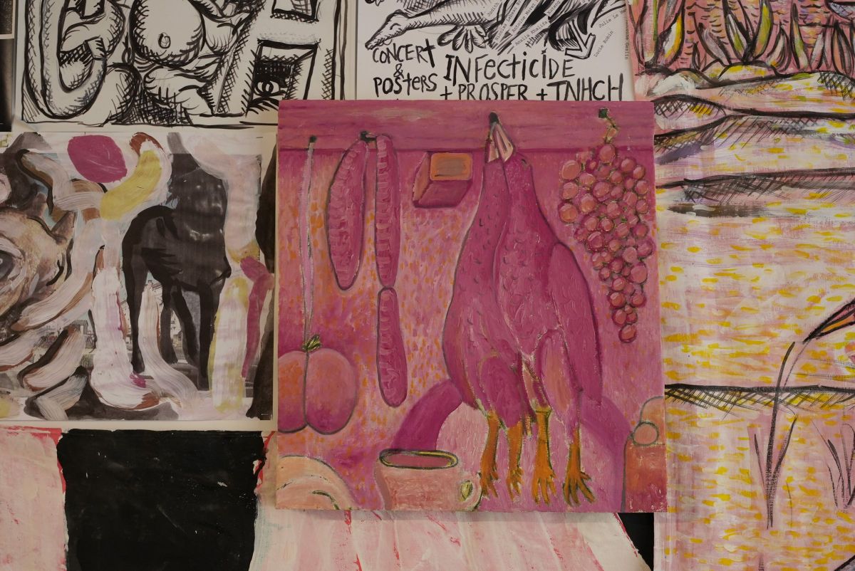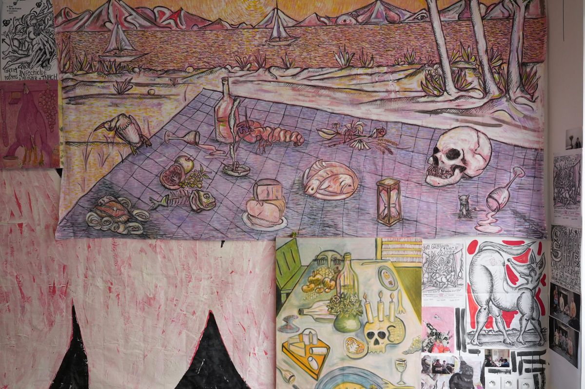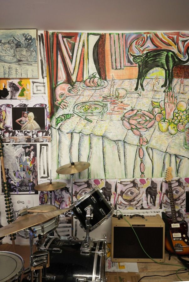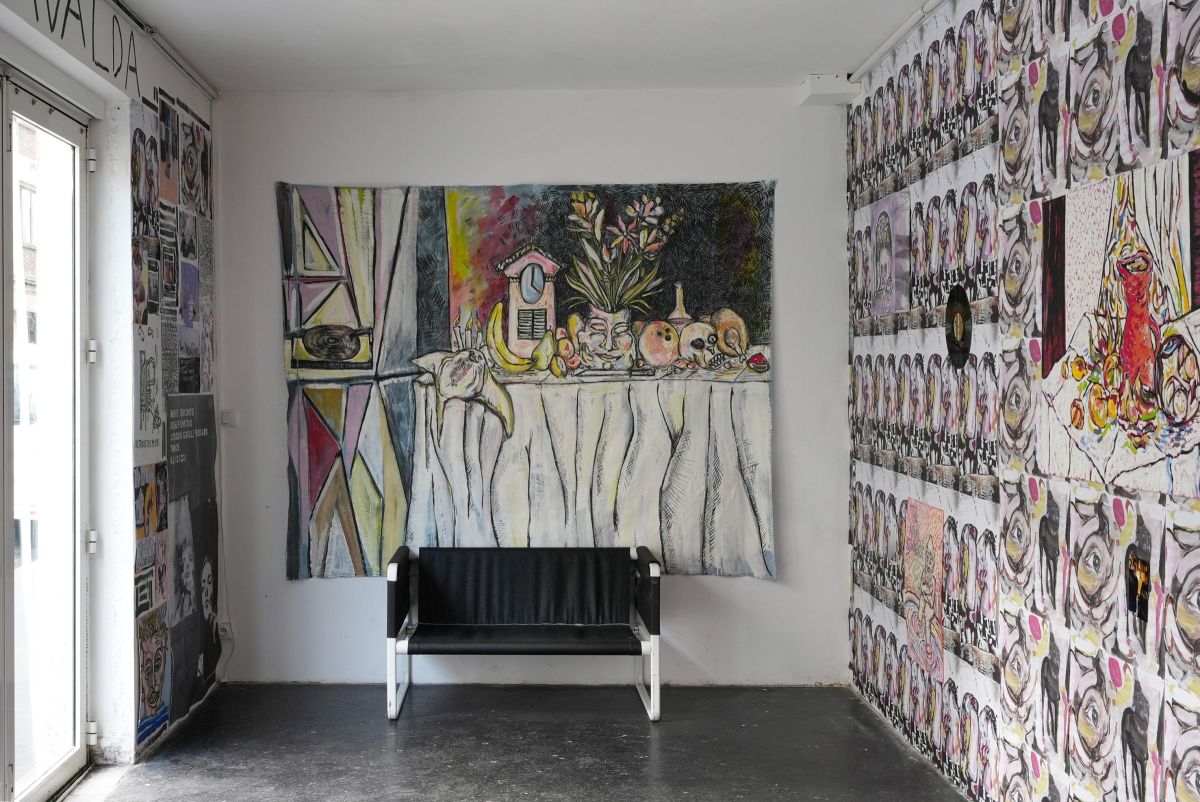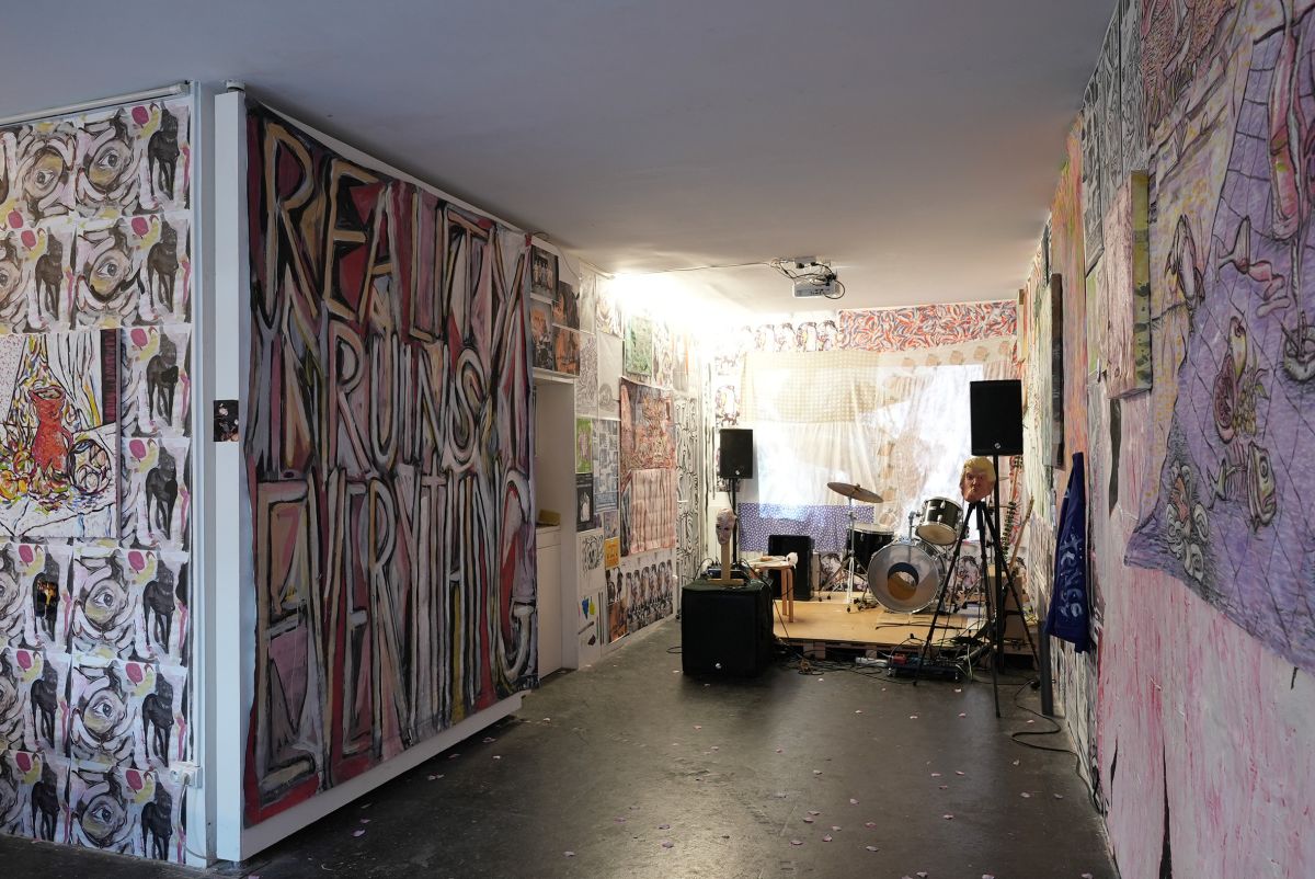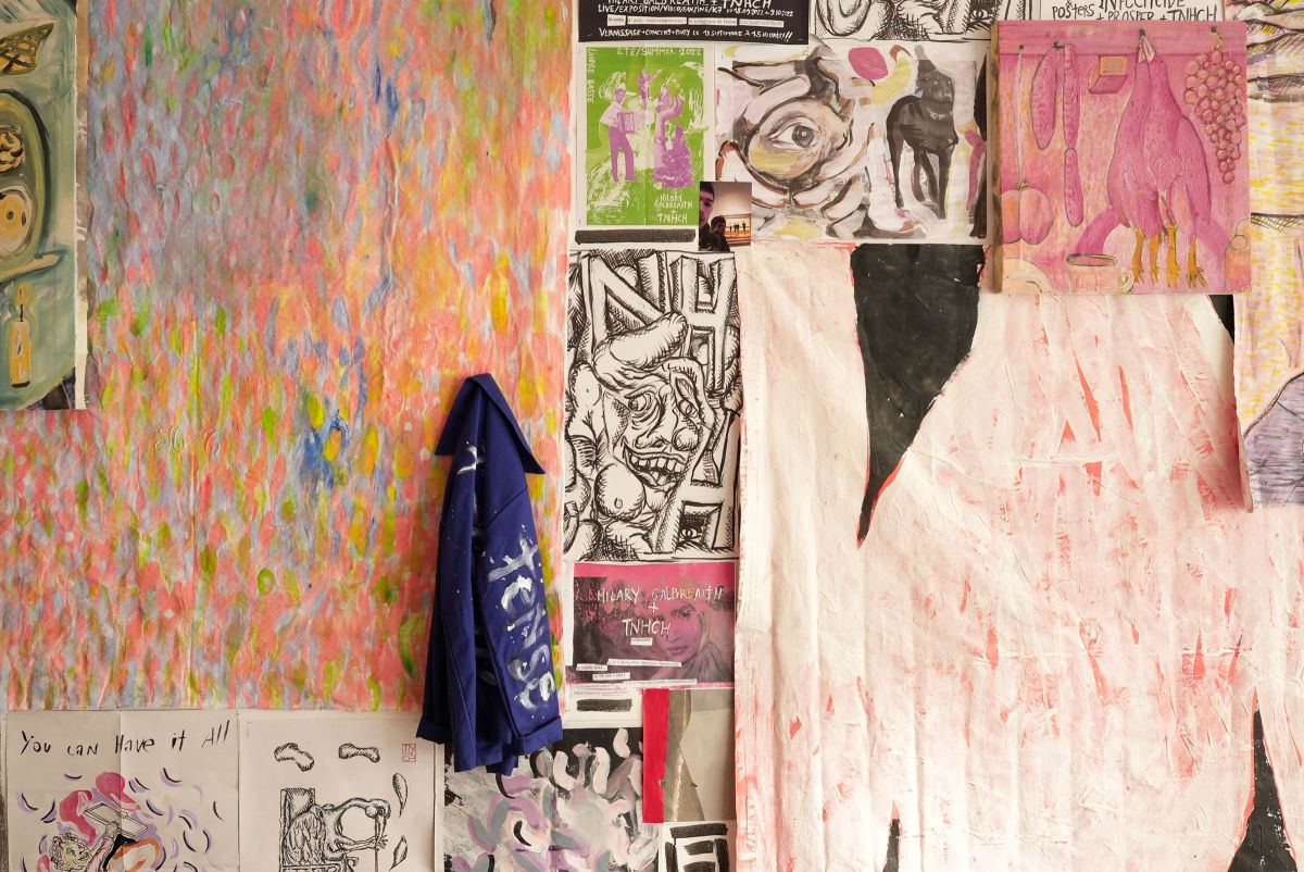 TNHCH et Hilary Galbreaith investissent Glassbox comme on occupe un garage, ou bien un disquaire, ou bien encore une salle de répétition, un atelier de peinture, un musée, sans vraiment se mettre d’accord sur ce que devient l’espace de la rue Moret, sans non plus choisir entre arts visuels et arts vivants. Fruit d’un travail qu’iels mènent depuis trois ans, l’album Valda a été enregistré à CAC Synagogue de Delme pendant l’été 2022. En s’inspirant de l’univers du musicien et artiste « Captain Beefheart » les artistes ont conçu un ensemble hybride et expérimental. Iels ont convenu pour cette résidence collective de créer un laboratoire sonore et plastique où se croisent leurs travaux de peinture, d’affiches, d’installation, de vidéo, de performance et de création musicale.