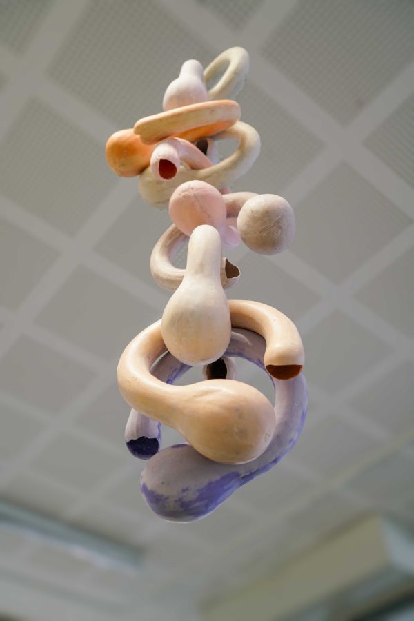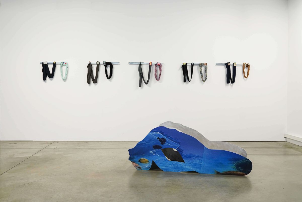 Vue d'ensemble avec les œuvres suivantes : Cougourdes, 2021-23, Matsyshelf, 2022, Matsyglasses, 2022, Cybersea, 2022, Matseaasana, 2022, nothing personal, 2025, Défilé des Bulky, 2025