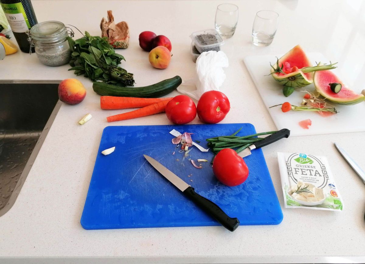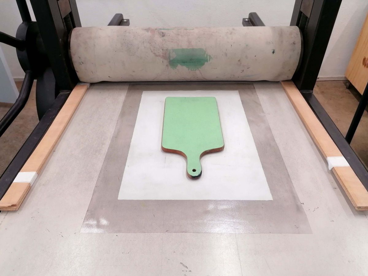 L’installation The final cut est le fruit d’une performance réalisée lors d’une résidence à La Haye consistant à m’inviter chez des particuliers en leur proposant en échange d’un repas que j’offre et cuisine sur place, qu’iels me donnent leur planche à découper de cuisine. À partir de celle-ci j’en tire une matrice afin de révéler les entailles comme des cicatrices au soleil. Des récits tirés de ces temps de repas et écrits à la main à même le mur, sont associés à cette série de planches imprimées.