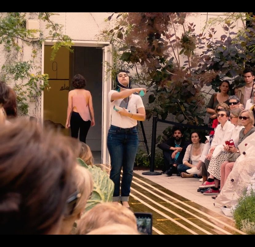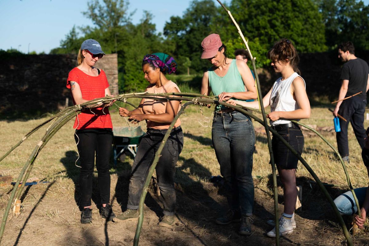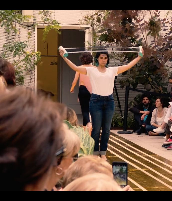 La première fois que j’ai rencontré Ines Dobelle, elle portait un chapeau vert en forme de cornichon géant et un imperméable en miroir. Les Ateliers du Vent à Rennes avaient programmé une de ses performances, Zyme Zyme, qui veut dire «Levure Levure» en grec, je crois. Elle attendait son public accroupie au milieu d’une chambre de culture, ces chambres en tissus troué dont on se sert pour faire pousser du cannabis à la maison et qui ressemblent étrangement à des …