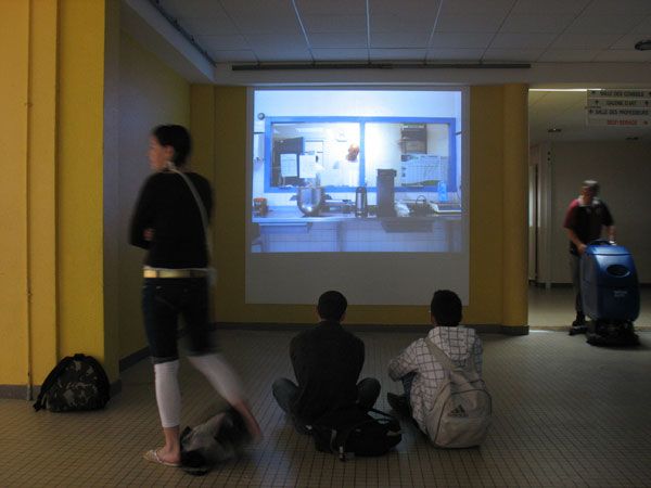 Collège Paul Féval, février-juin 2009 est une somme d'images projetées (577) prises lors de la résidence. Elles ne constituent ni un reportage - pas de démonstration, pas de fil conducteur - ni un inventaire - pas de système. Si trois thèmes principaux se dégagent, - matières/matériaux, corps/espaces, architecture/paysage - le montage est aléatoire, ne privilégiant aucun sens de lecture particulier. C'est un regard sur le collège à un moment donné.