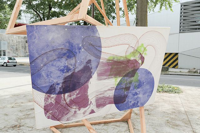 Constellation c’est une installation faite d’un module construit avec les étudiants de l’école Pivaut. Entre structure et sculpture, ces éléments sont le support de « Rien n’arrête nos esprits ».