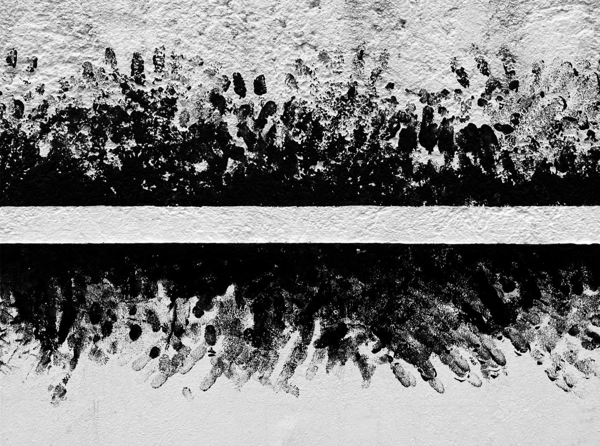 Non sans rapport avec une autre pièce, intitulée Les Mains sales (2012), mais ayant le mur comme terrain de jeu, Bandeau évoque aussi la relation ambigüe entre l’Homme, la trace, la pollution… l’aveuglement.