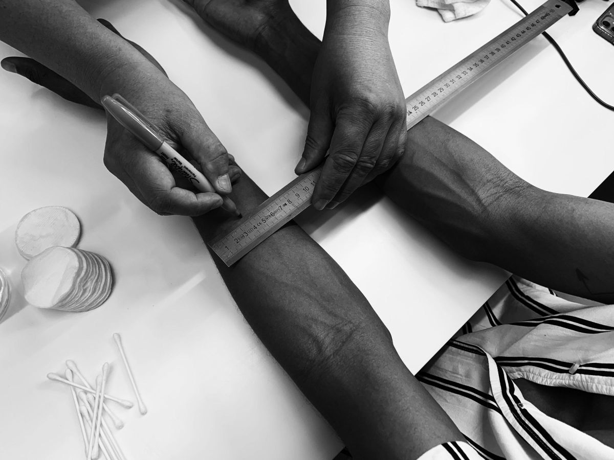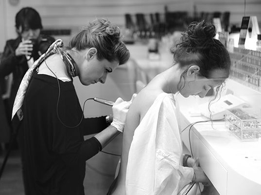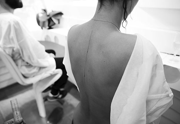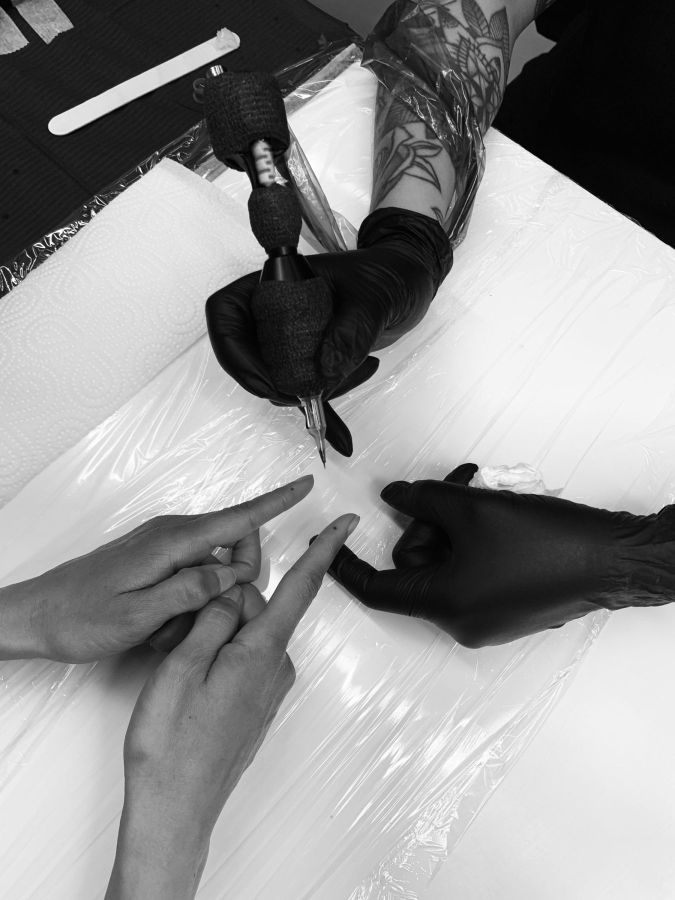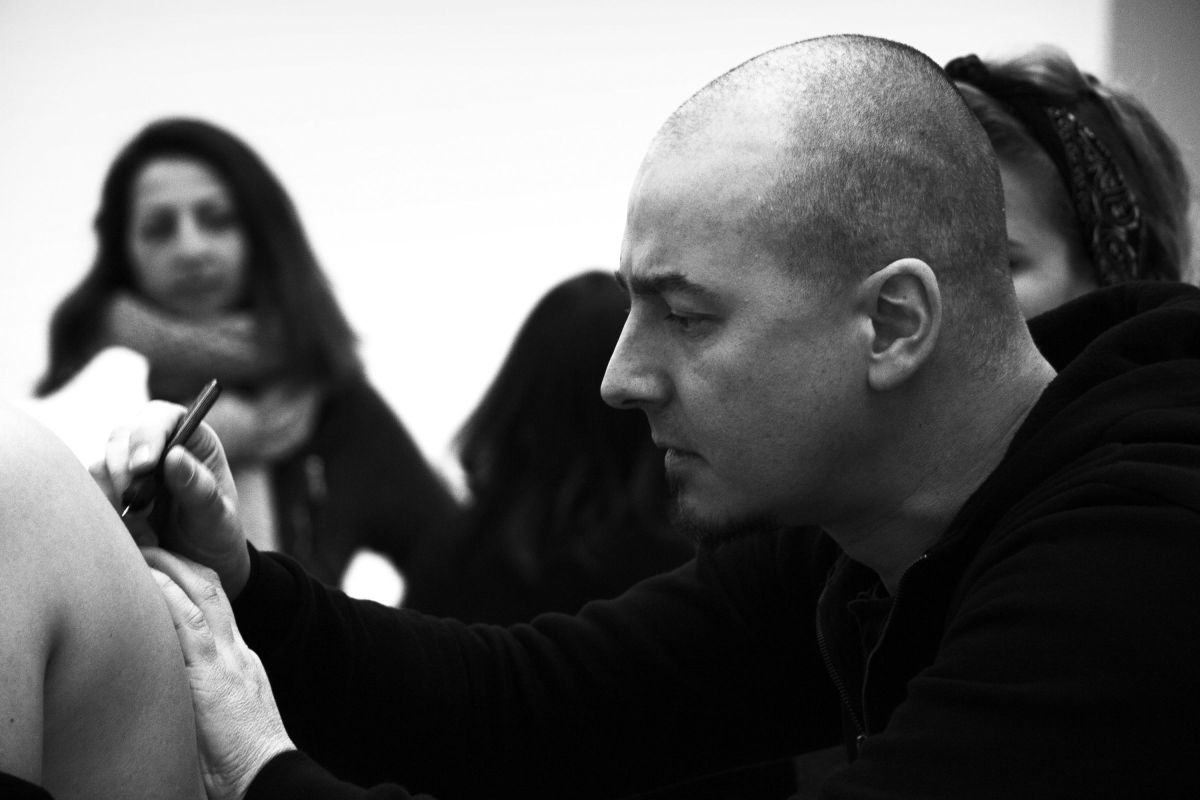 Action. Tatouages in situ : reproduction symétrique des grains de beauté existants sur le corps d’un modèle