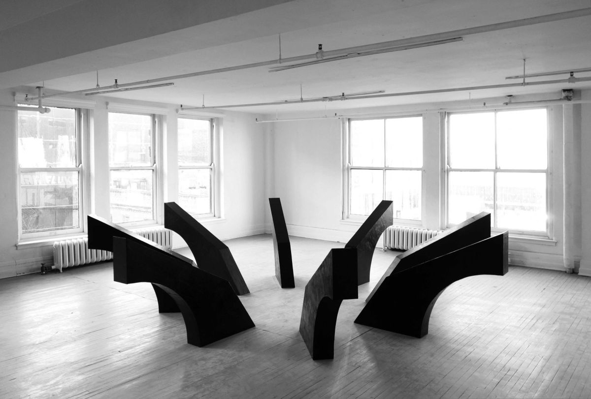 Mais est-ce là une structure destinée à soutenir ou au contraire à éviter ce poids qui pourrait tomber du ciel ? Comme la forme abstraite d’un Atlas jouant le rôle d’un socle dont la sculpture elle-même s’est depuis longtemps débarrassée ? Ce que nous voyons c’est une sorte d’échangeur, à travers lequel, venus d’un point, nous pouvons repartir dans l’une des sept autres directions indiquée par les intervalles qui séparent ces monolithes disposés régulièrement en suivant l’angulation d’un marteloire invisible qui nous permettrait de naviguer entre ciel et terre.