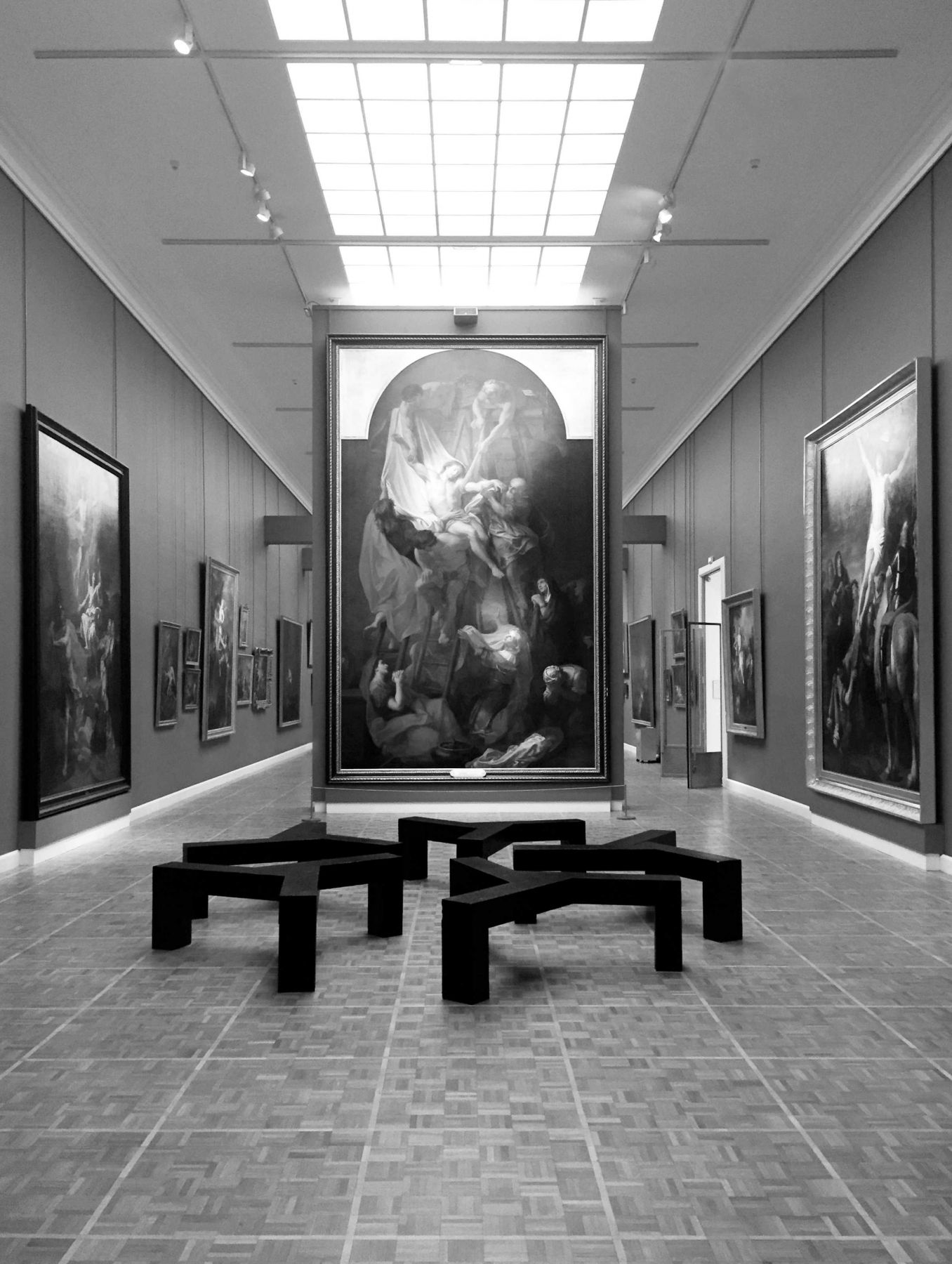 Fleury-Mérogis est entré dans la collection du Musée des beaux-arts de Rennes en 2013. Présentée en permanence au premier étage, dans la grande galerie des retables des XVIIe- XVIIIe siècles, cette œuvre, par sa densité, sa symétrie et sa simplicité, contribue à la majesté de cet ensemble de grands tableaux religieux. Elle permet aux visiteur·se·s une pose méditative et crée un hiatus entre des médiums, des époques et des finalités de l’art.