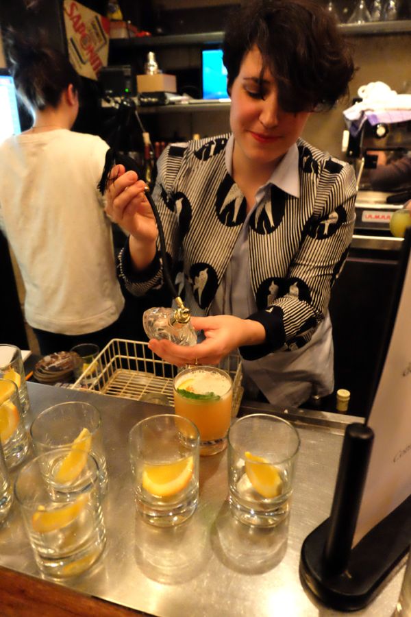 « eau de cologne » qui à l’origine avait un usage autant gustatif, médicinal que cosmétique. Elle propose de délocaliser le goût dans le nez. L’odorat devient le moyen d’accommoder les aliments. Chacun d’entre eux est accompagné d’un parfum qui agit comme un condiment. Les expériences culinaires et olfactives ont été concues en crescendo de manière à rendre visible la stucture du parfum final : eau succulente