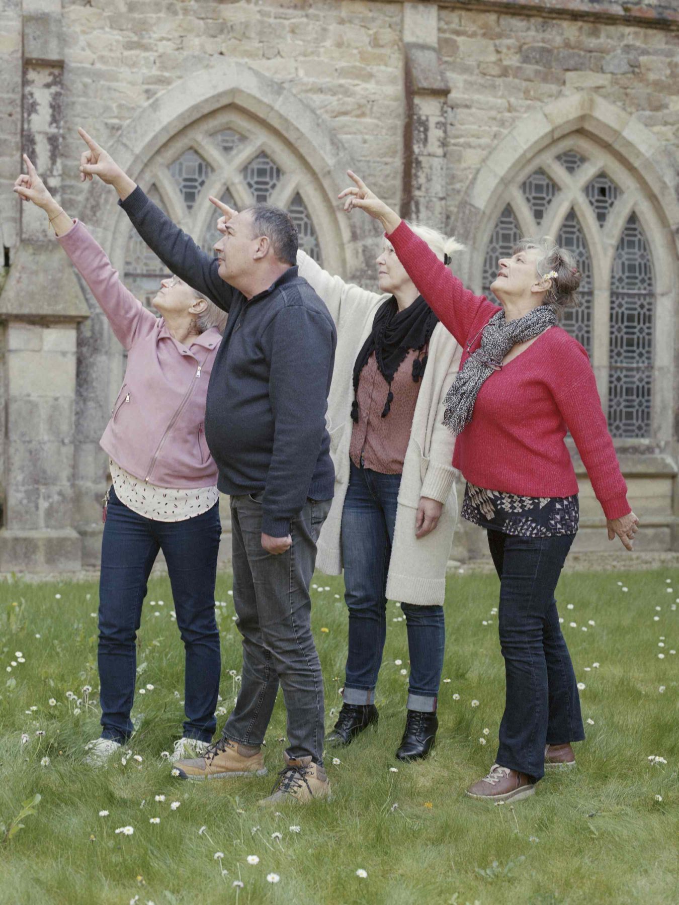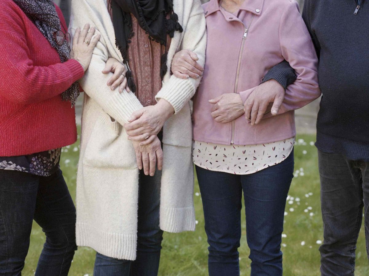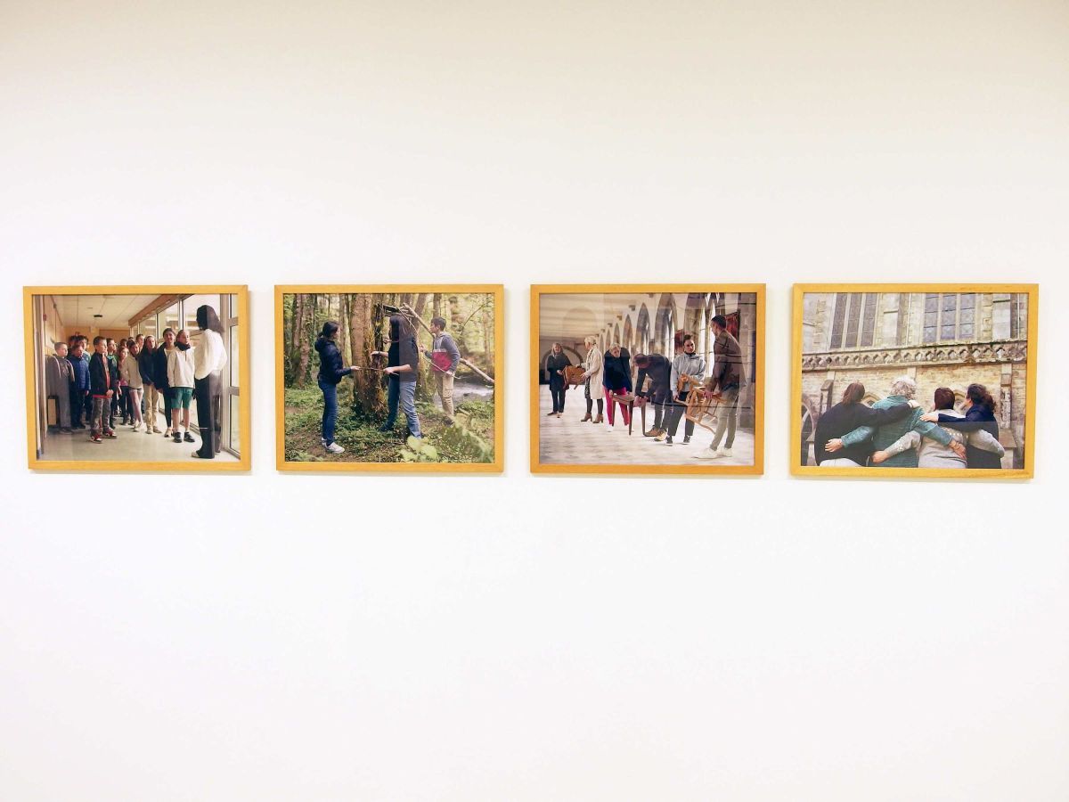 Durant les séances avec l’artiste, les participant·e·s ont été amené·e·s à porter leur regard sur les gestes qui construisent et fédèrent un groupe, sur les gestes de soin et de soutien vécus au quotidien. Ces derniers ont d’abord été photographiés dans un studio photo mobile en gros plan, puis mis en scène dans les espaces des différents établissements. Des photographies de familles et d’archives rapportées par les participant·e·s ont également été photographiées lors des séances.
