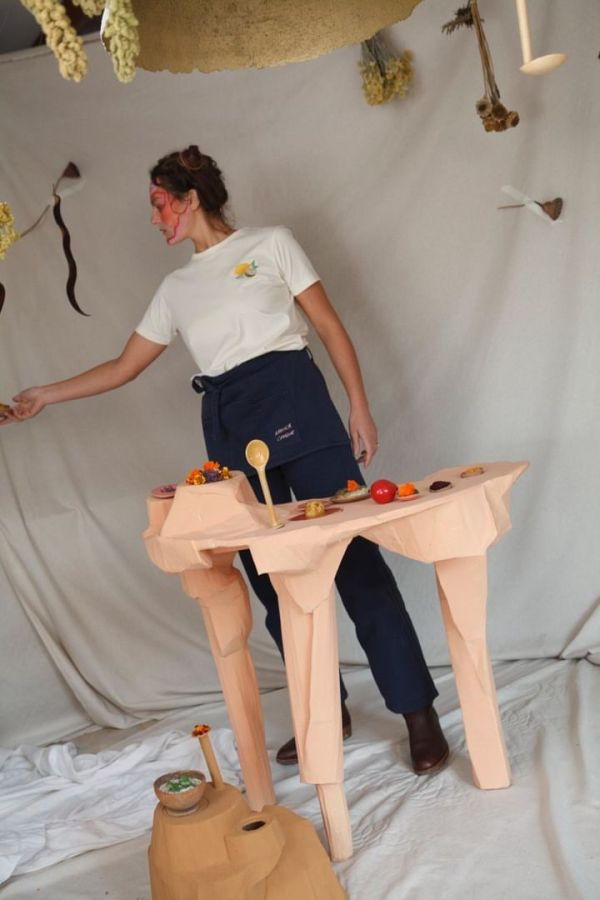 Chloé Chabaud, créatrice de la marque de prêt à porter Graine m’a invité à produire un décor et des recettes pour la collection automne hiver 2022. Cuillères-saladiers, bols et épicières suspendues, socles à pain, montagnes-buffets et fontaines à graines ont accueilli les plats cuisinés pour mettre en valeur les produits de la marque.