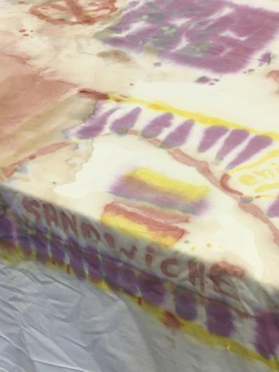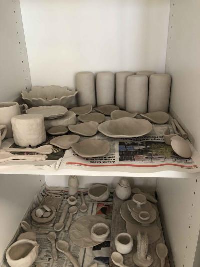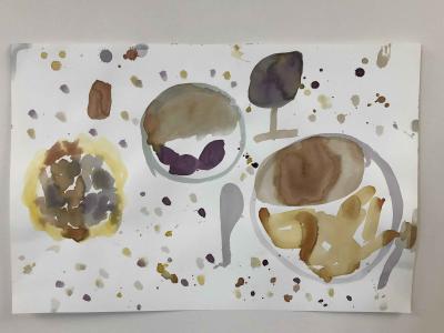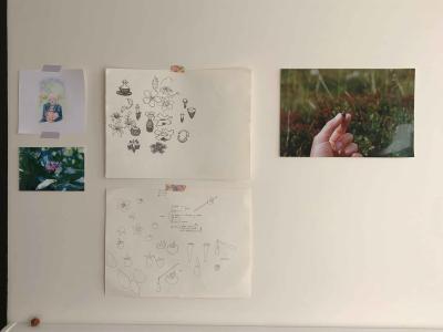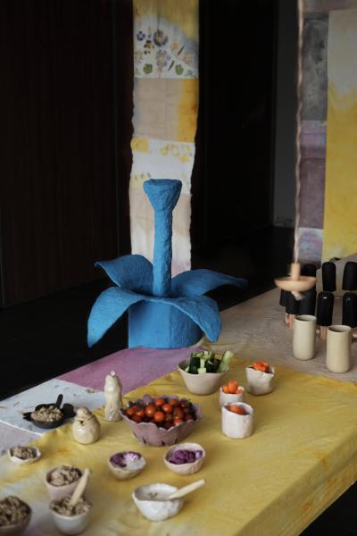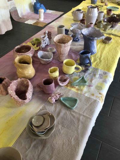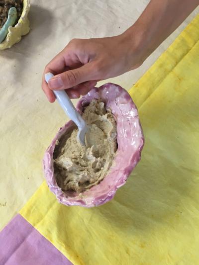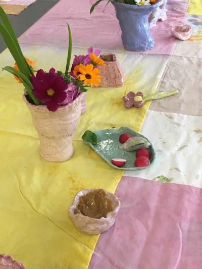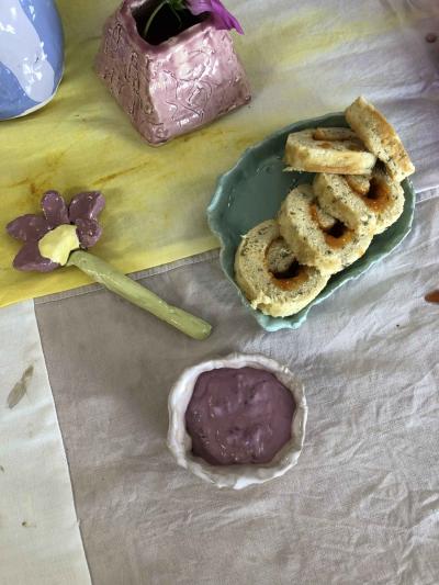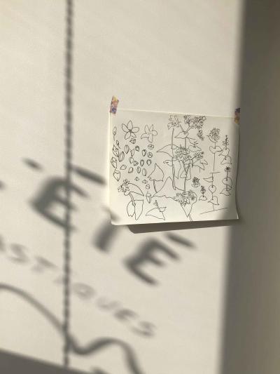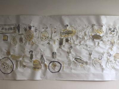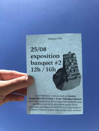 En juillet et août j’ai fabriqué une résidence à l’Ehpad / centre hospitalier de Crozon grâce à l’association Ty Buez portée par Pélagie Godin. Manger l’été à pris la forme d’ateliers jeune public et adulte en vu de préparer ensemble un banquet exposé à croquer. La porte ouverte m’a fait rencontrer de magnifiques personnes. Yvette ma coach aura été un joyeux soleil tous les matins de 11h à 11h45. Les pièces des enfants, des adultes, des ado, les miennes, la présence des parents et résident·es de l’Ehpad ont donné forme à deux temps de rencontre.