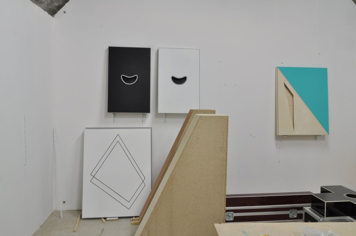 Lever de rideau / Le soleil brûle déjà la peau et enflamme la scène où se tiennent — sur un même plan — sculptures meubles tableaux objets supports surfaces : combinaisons à échelle et géométrie variables, en deux et trois dimensions : hybridations de formes élémentaires et de signes cultu(r)els : mises en abîme et en perspectives, projections et résonances contenues : tautologies et incorporations aux accents scéniques et co(s)miques à plat en plein en vide en volume en …
