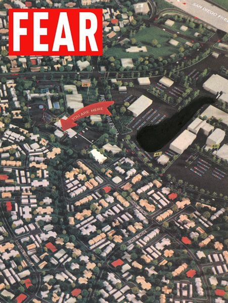 Un reportage photographique consacré aux gated communities aux Etats-Unis mettait en lumière la peur généralisée des personnes vivants dans ces villes-camps ultra protégés. Les images sont retouchées à l’encre noir. Le logo FEAR -référence directe au magazine LIFE- apparaît sur chaque image, comme une couverture de magazine.