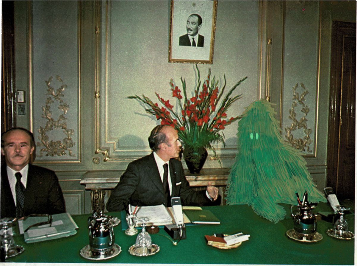 Qui n’a jamais rêvé qu’une présence hostile, monstrueuse, indéfinie, venait perturber son quotidien ? Qui ne se rappelle avoir ressenti, étant enfant, une angoisse paralysante devant l’ombre inconnue dessinée par un meuble de la chambre ? C’est un souvenir de ces peurs enfantines qui se lève en nous lorsque nous regardons ces images transformées. S’y projettent aussi nos angoisses diffuses d’adultes. A moins qu’il ne s’agisse de l’inconscient, masse non maîtrisée, avec lequel chacun, adulte ou enfant, se débat ? La richesse d’une image se juge à la diversité des interprétations qu’elle suscite ; et sans doute celles-ci détiennent-elles aussi leur part de malice et de jeu. Détourner les images -procédé toujours cher à Mathieu Renard - est une invitation à les relire. Les photographes du régime stalinien effaçaient les personnages politiques jugés gênants ; ici le processus est inverse, les formes noires s’invitent, pour mieux en souligner l’esthétique figée, conformiste, ou pour rendre ridicule et brocarder leur sujet, comme sur cette reproduction photographique représentant la statue gigantesque de Kim Il Sung, devant laquelle se prosterne respectueusement une foule.