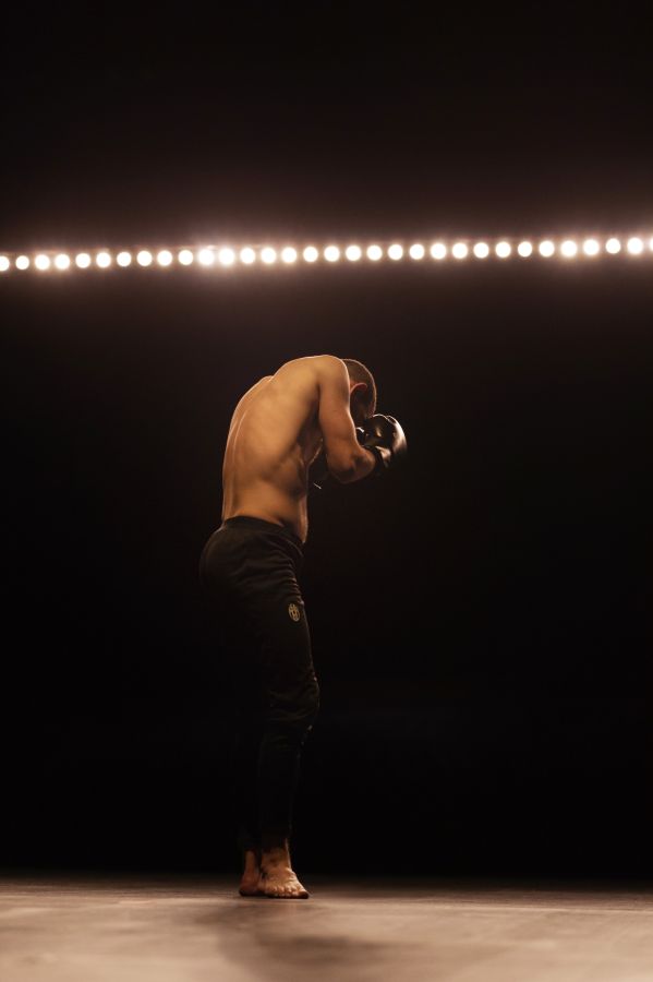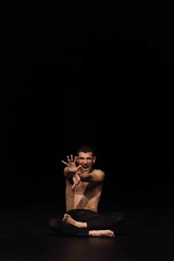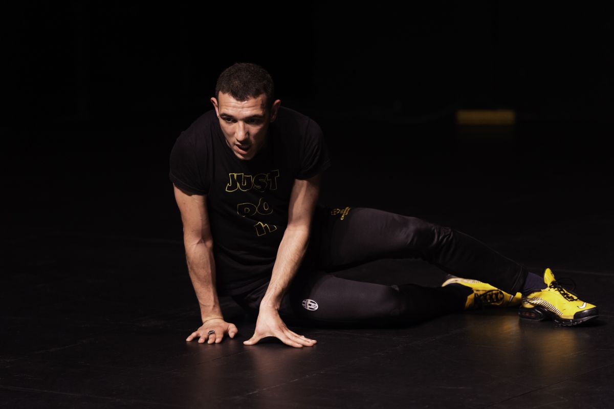 Ce sera entre autres l’occasion d’aborder la relation qu’il entretient à ses racines et à sa famille. L’occasion également de se confronter à un parcours de vie composite, dans lequel l’armée a été un virage important. Son rapport au mouvement en est pétri, nourrissant une physicalité rigoureuse, énergique et sans fioritures. Physicalité d’autant plus énergique qu’Heddy a aussi une grande pratique de la boxe, qui alimente intrinsèquement son rapport à la chorégraphie. L’écriture de la pièce est également composée d’autres éléments biographiques, tels que la passion qu’il voue, en éternel adolescent, à Dragon Ball Z ou son parcours de supporter de l’Olympique de Marseille aux slogans sans équivoque.