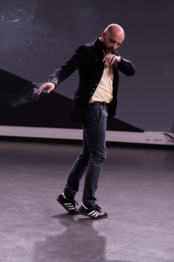 Renaud Mascret est, entre autres, chanteur. Il est également psychiatre, il s’engage particulièrement auprès d’adolescents en difficulté. Ce ténor est interprète dans une de mes créations, Chorus, pièce chorégraphique pour 24 choristes. Son engagement physique, son goût pour le jeu et la puissance de sa voix m’ont amené à l’inviter pour ce solo. Soli est l’occasion d’approfondir notre collaboration et de poursuivre une recherche déjà entamée avec Chorus sur le rapport corps/voix, cette fois sur un mode plus intime.