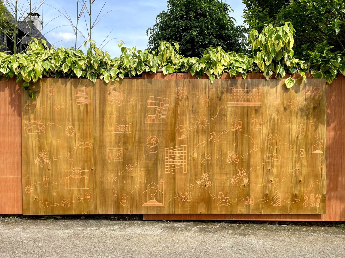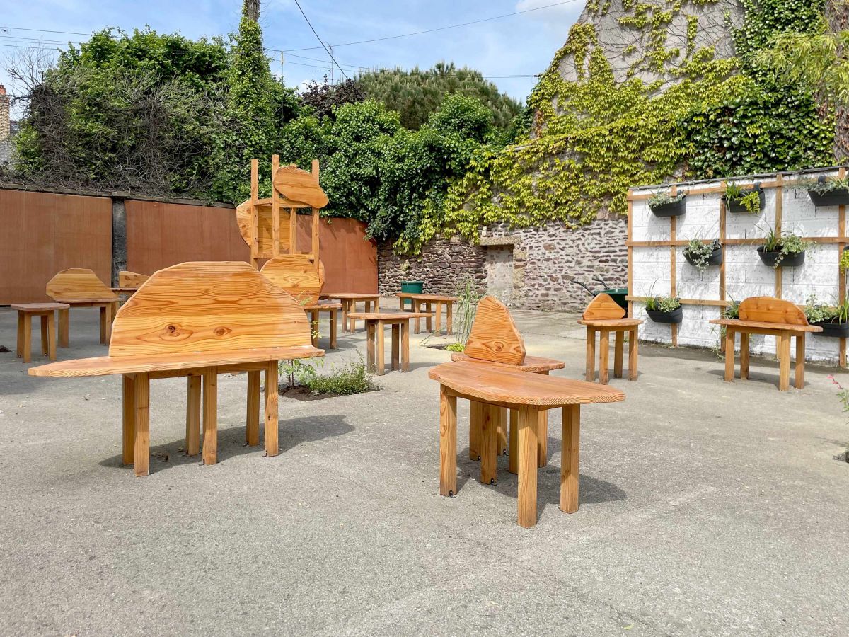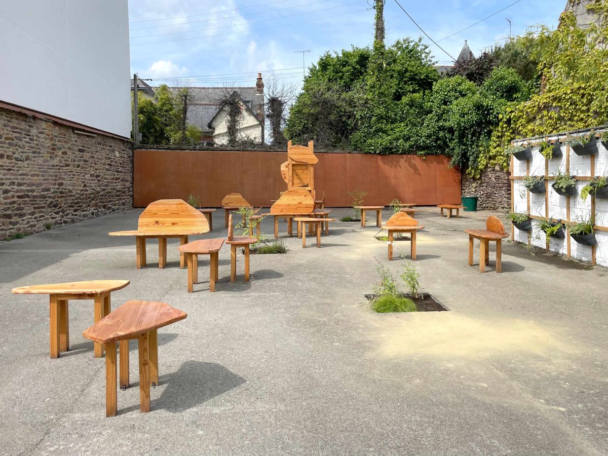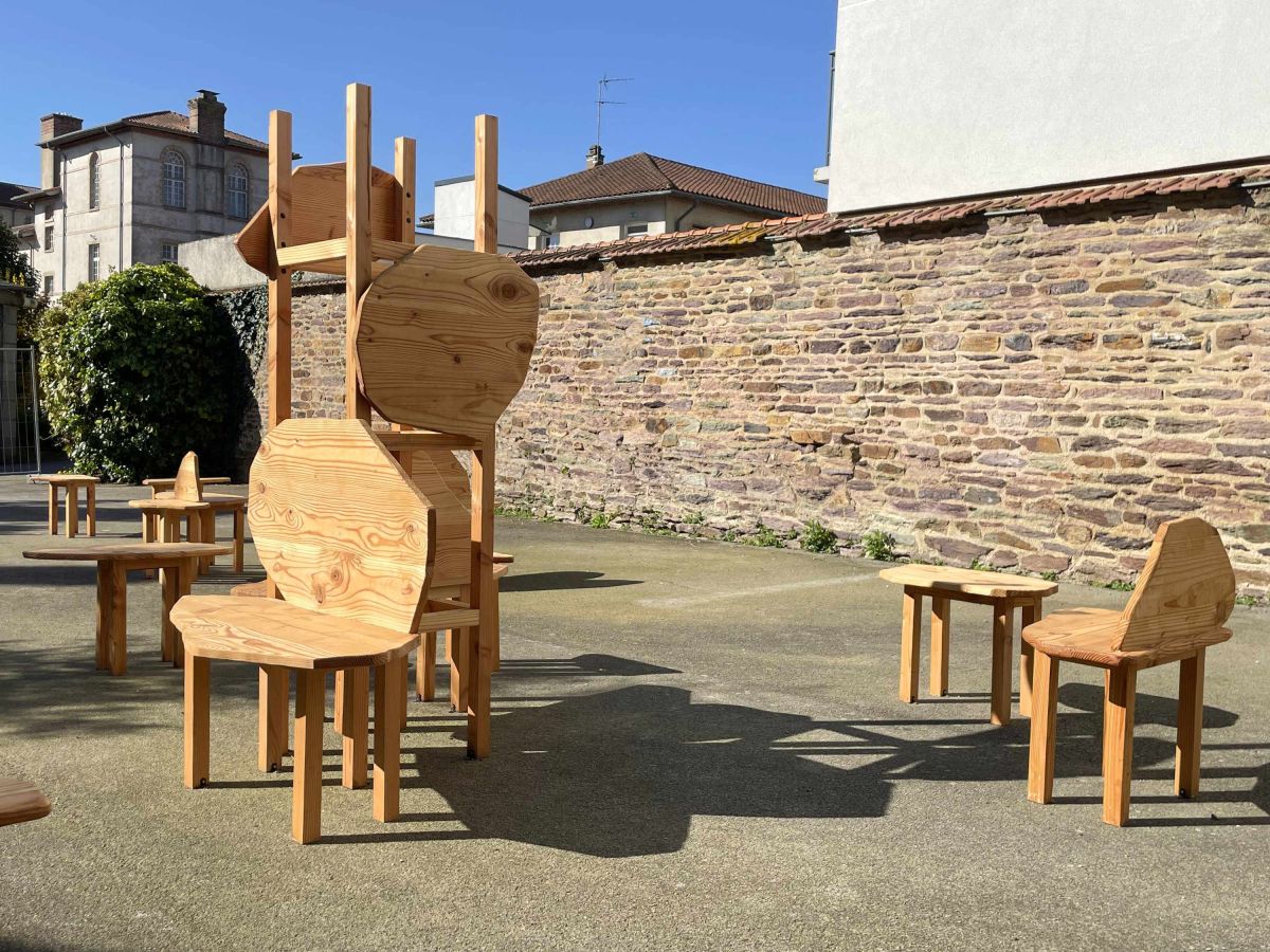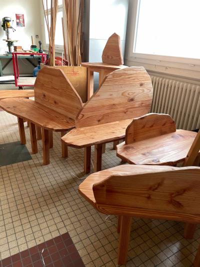 réaliser un aménagement combinant constructions de mobilier et interventions paysagères. De leur côté, les élèves de 1re ont créé une carte sensible présentée sur le mur : elle rassemble des récits, réels ou imaginaires, inspirés de leurs parcours dans le lycée, quotidiennement traversé et observé.