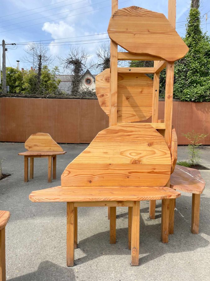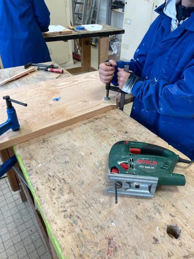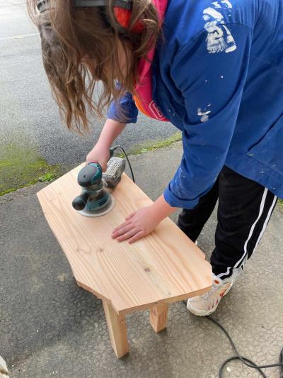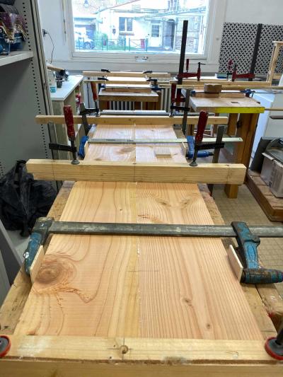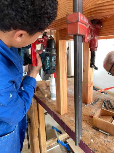 Vues des étapes de fabrication de la sculpture avec les élèves
