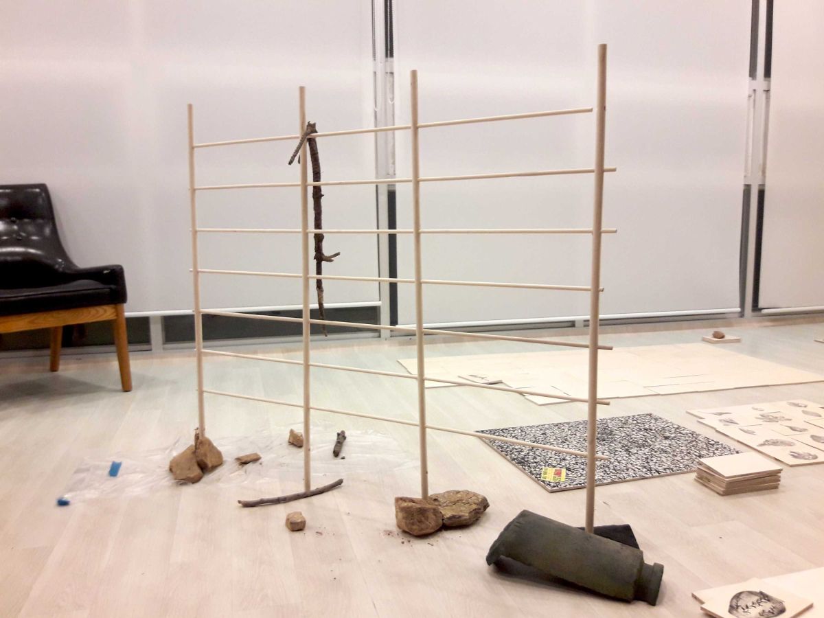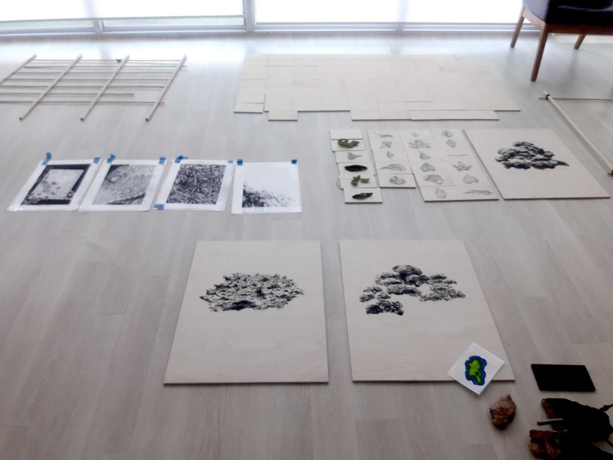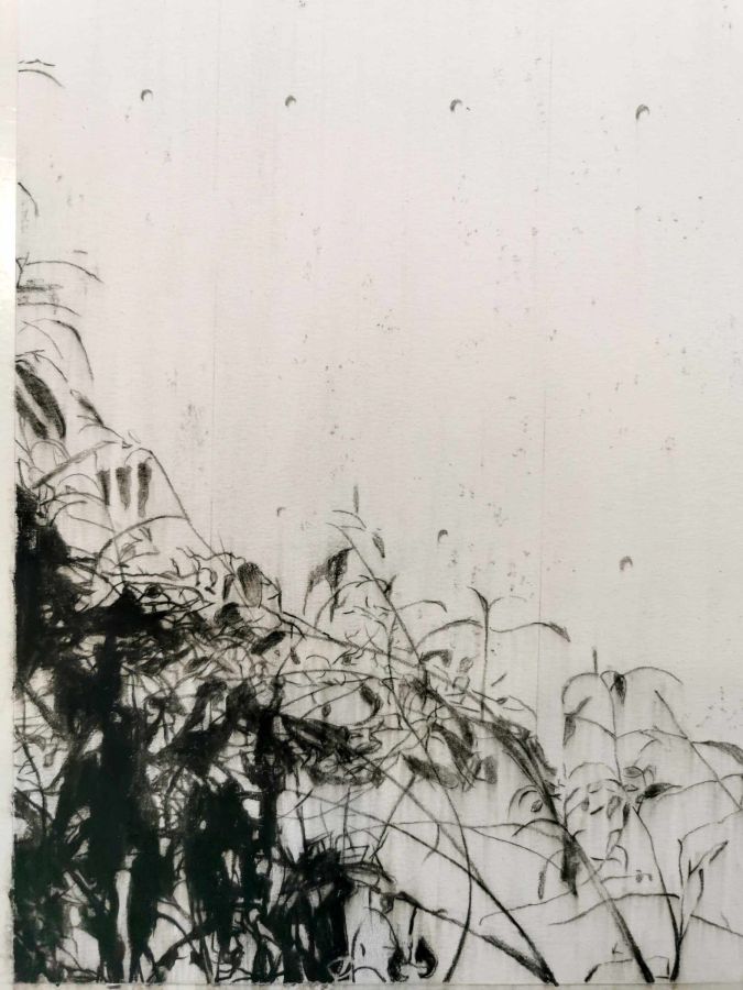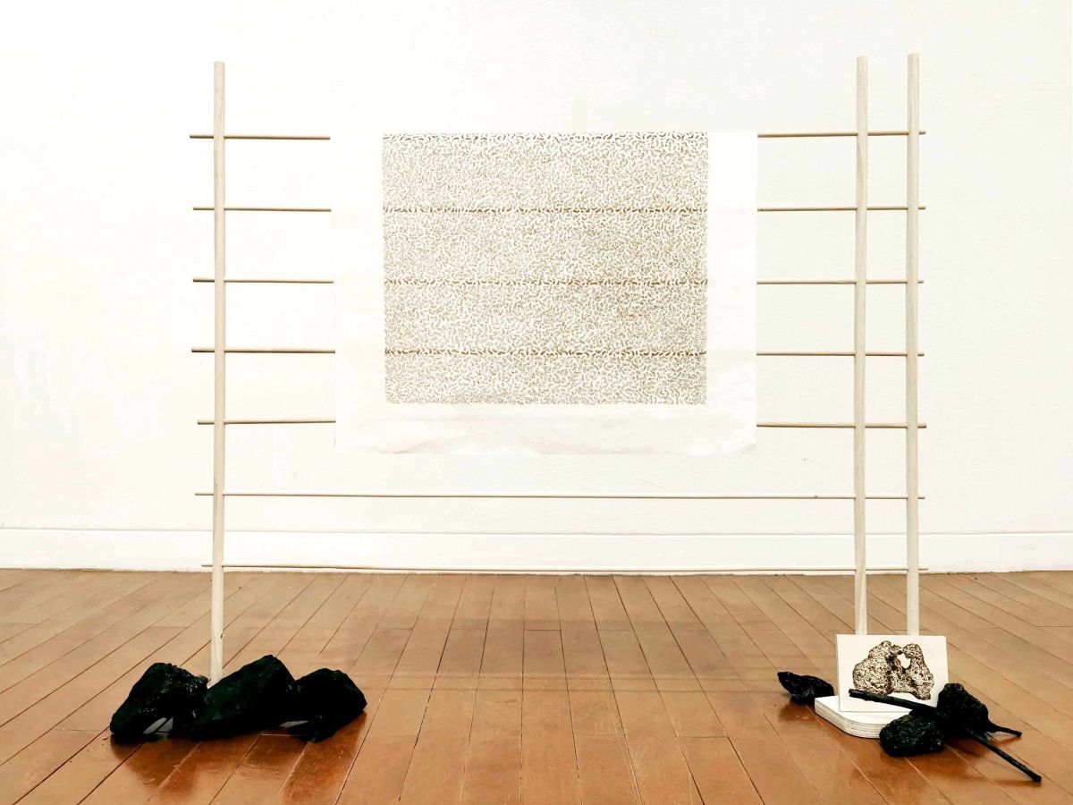 Une installation de dessins au charbon présente des motifs inspirés des Viewing stones (Suseok, en coréen), ces petites pierres choisies et posées sur des socles, évoquant un paysage naturel de plus grande échelle. Les caractéristiques techniques élaborées pour le choix de ces roches - nombre de trous, creux, reliefs, formes - sont ici appliquées à une sélection d’objets divers glanés aux alentours, provoquant un doute sur leur caractère naturel ou artificiel. Une série d’images réalisées à la pierre noire amplifie et documente ces interactions.