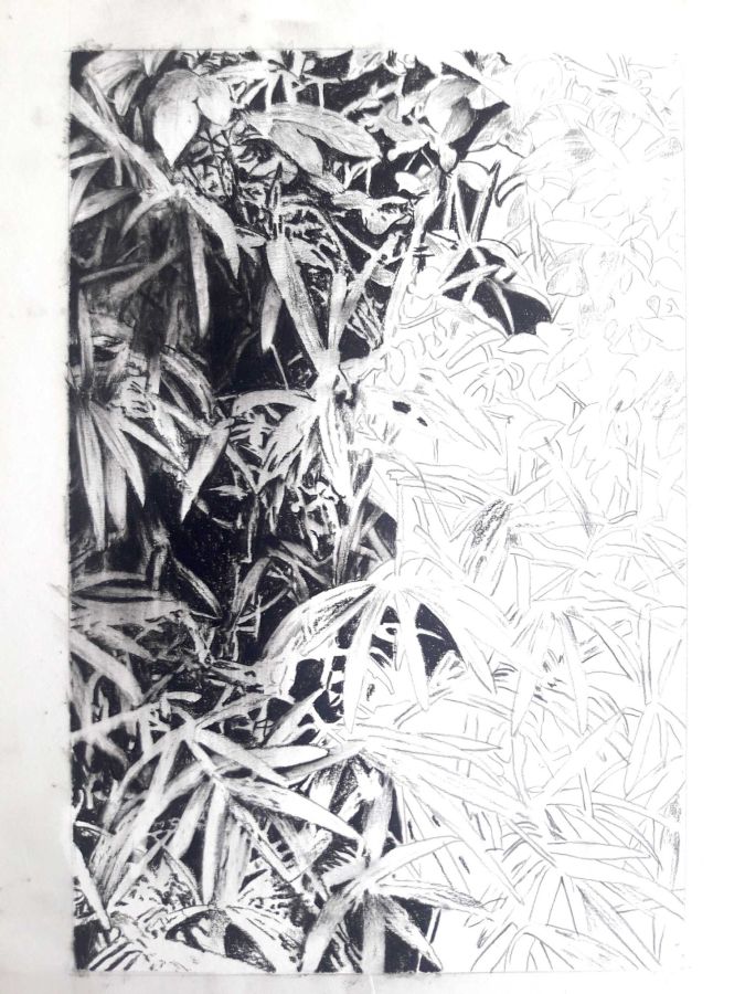 Pyrogravure sur papier de mûrier, 90 x 60 cm