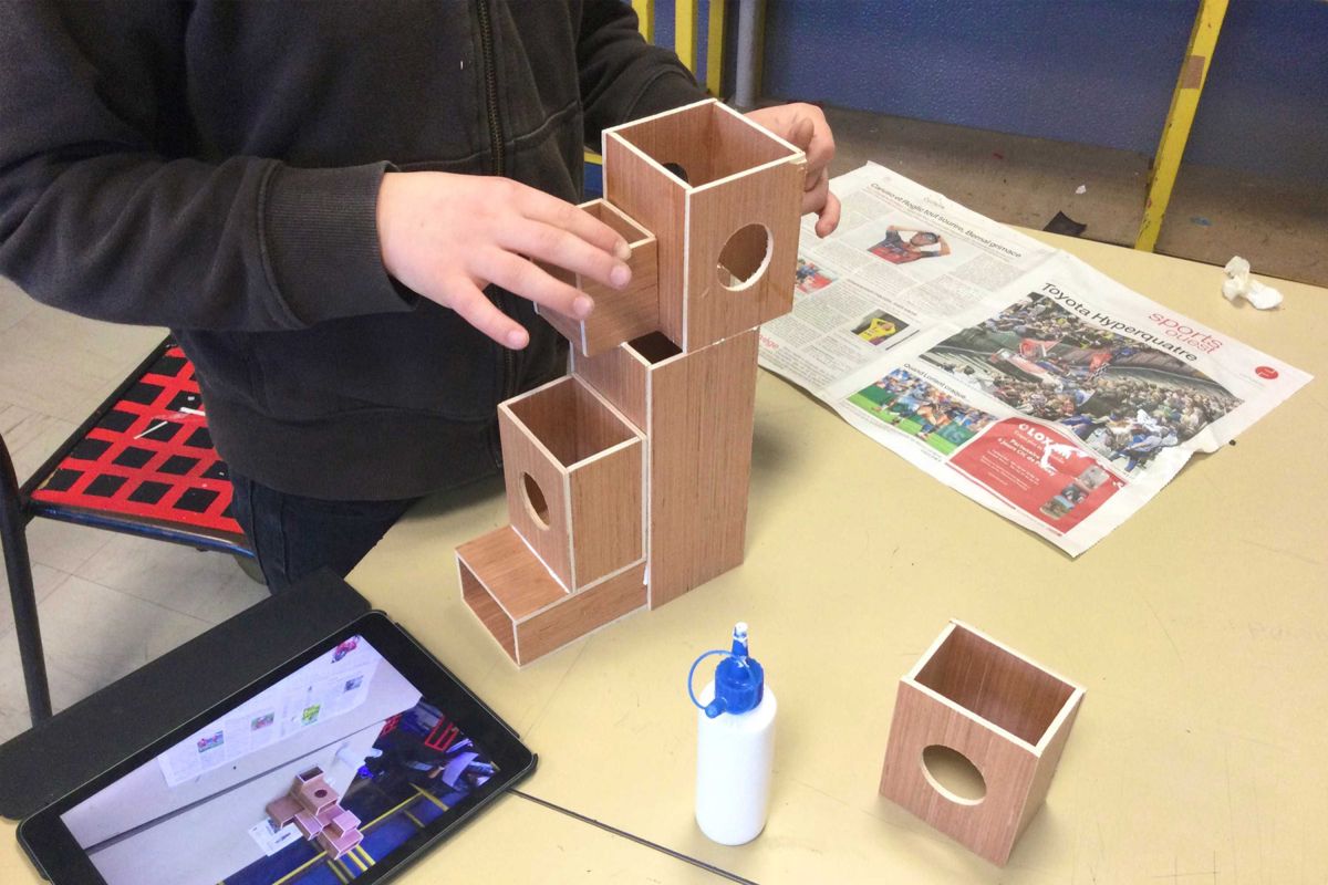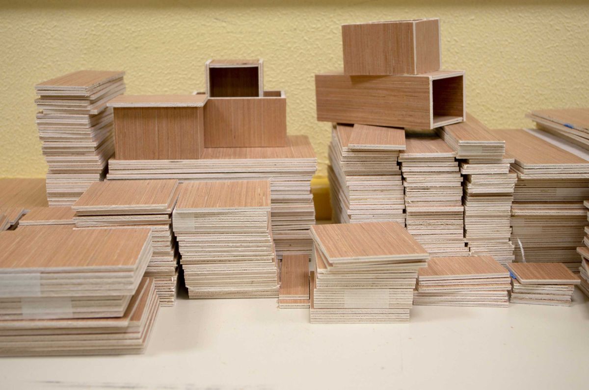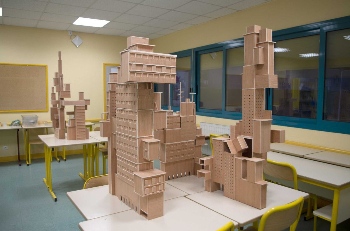 Terrains Fertiles est né d’une résidence de création menée avec les élèves du collège Le Verger à Auray. Les collégiens ont été invités à revisiter leur établissement à travers l’observation de son architecture, en interrogeant les notions de bâti, de volume et de construction dans ce lieu qu’ils parcourent chaque jour. À partir d’éléments issus de l’industrie du bois (bois de construction, mobilier), ils ont expérimenté différents modes d’assemblage et de fabrication, donnant forme à de nouvelles interprétations de leur environnement.