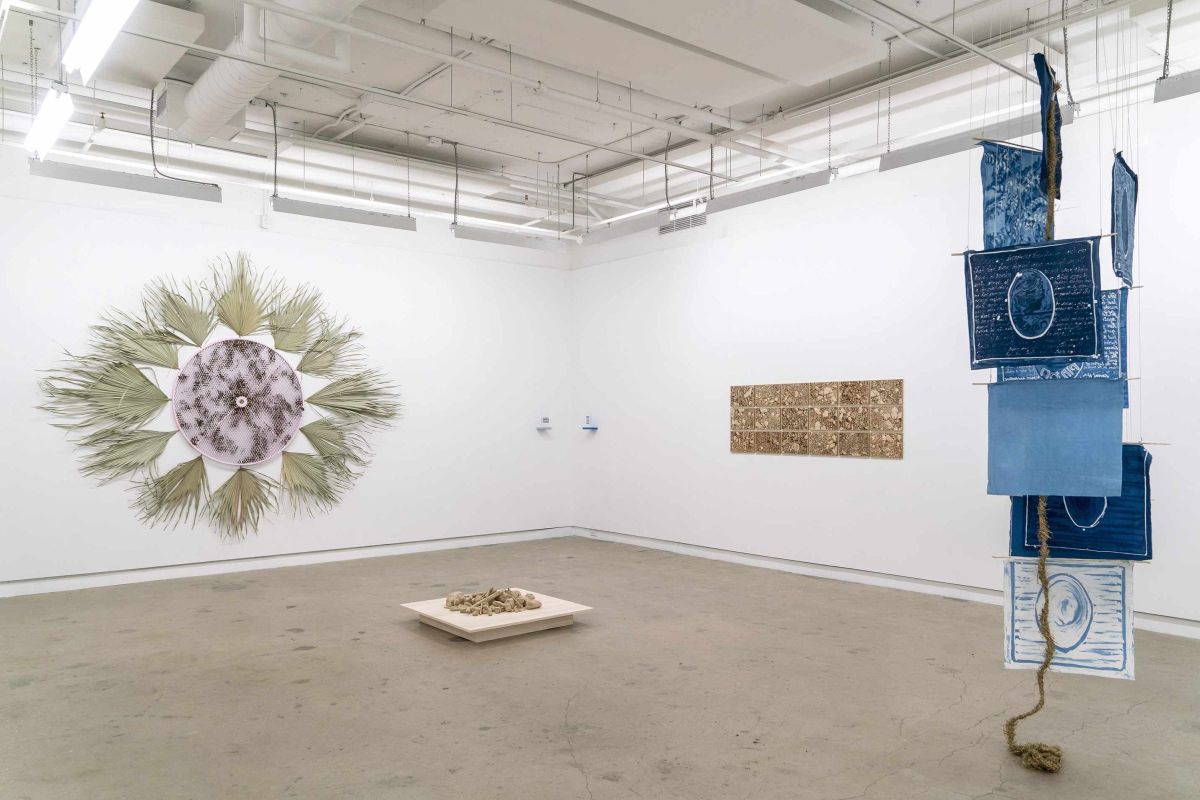 Vue de l’exposition collective Entre chien et loup – avec les œuvres d’Ingrid Lyons, Lucie Rocher et Jonathan ‘radbwa faroush’ Mayers, Centre d’art Diagonale, Montréal, 2025