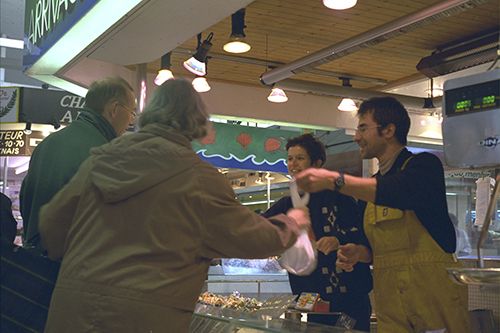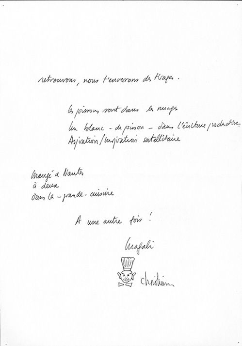 Le mot Poisson fut écrit dans la nuit du 21 au 22 octobre 1995, par le tracé d’un chalutier en pêche. Il s’agit du parcours du bateau sur la mer et donc de celui du chalut (filet) au fond de la mer. Les poissons se trouvant sur le tracé de cette écriture furent donc pêchés.