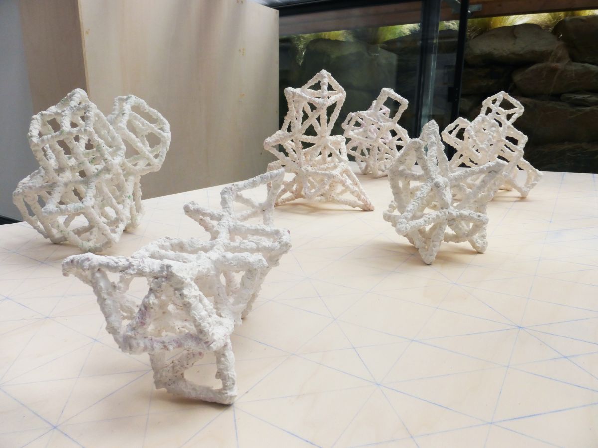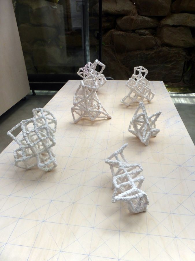 Ces six petites sculptures sont de possibles représentations de structures nuageuses.